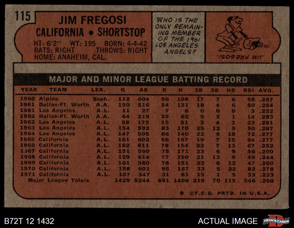1972 Topps #115 Jim Fregosi 3 - VG
