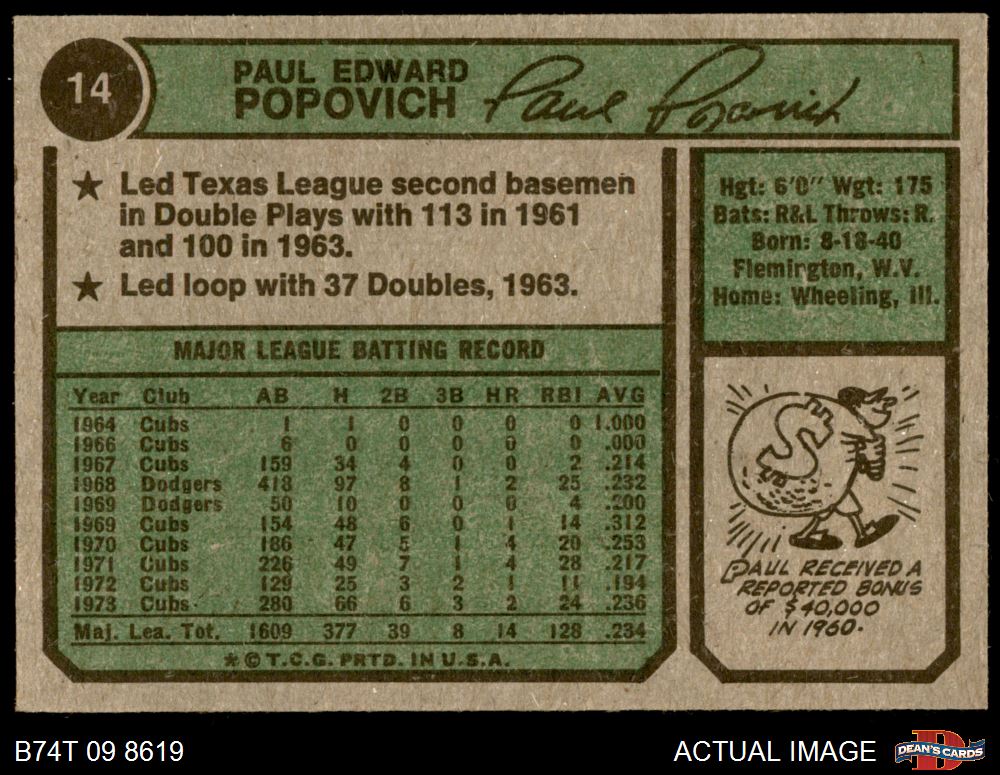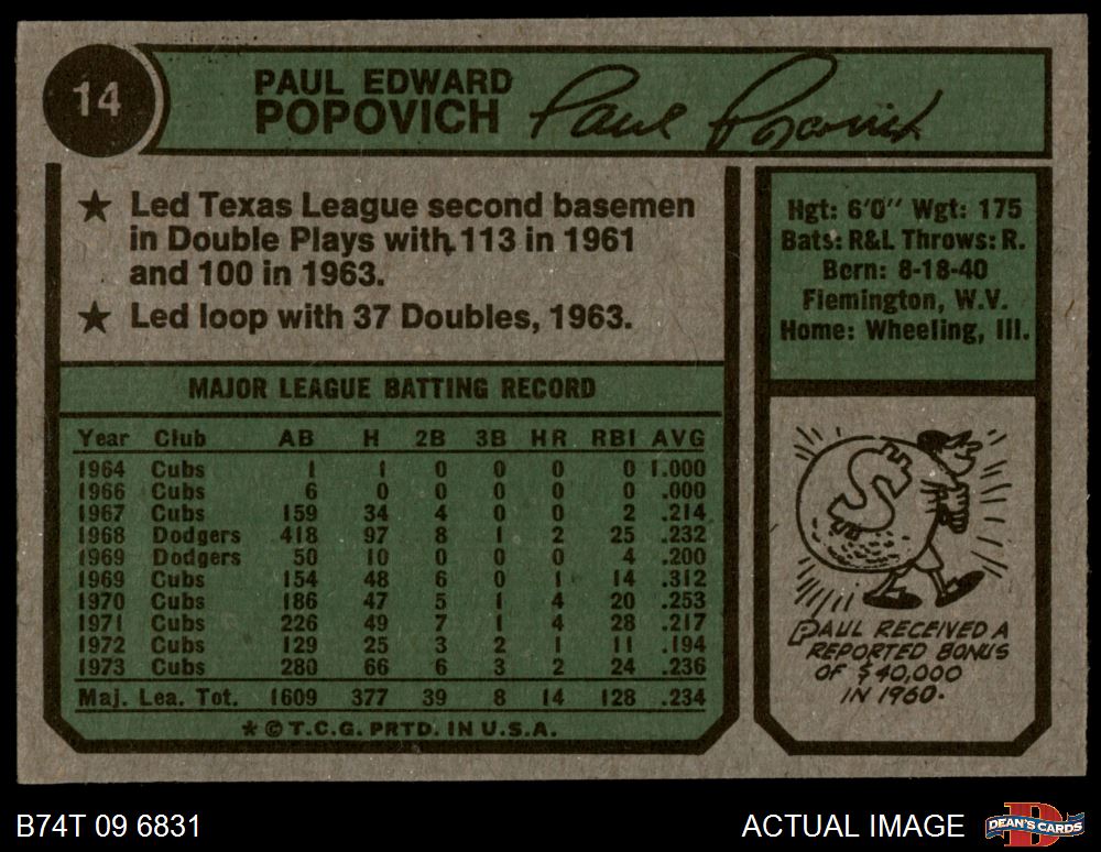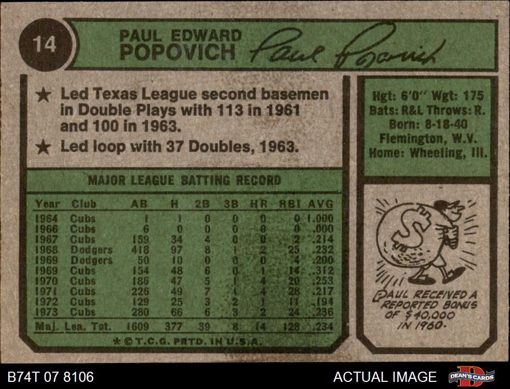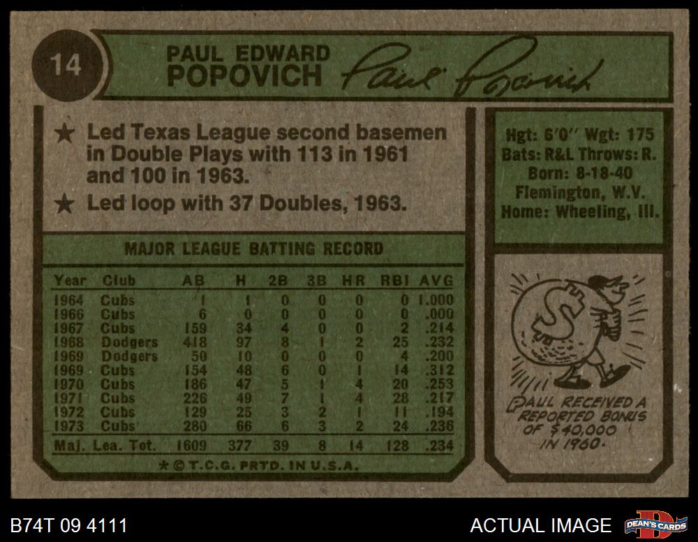 1974 Topps #14 Paul Popovich 6 - EX/MT