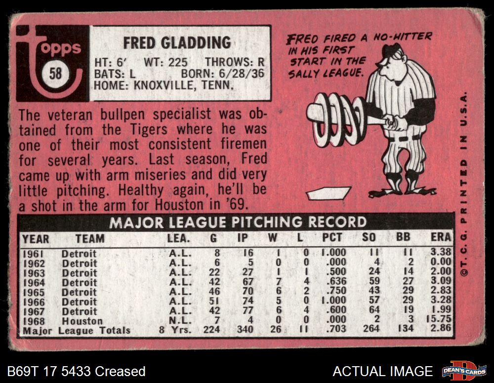 1969 Topps #58 Fred Gladding 1 - POOR
