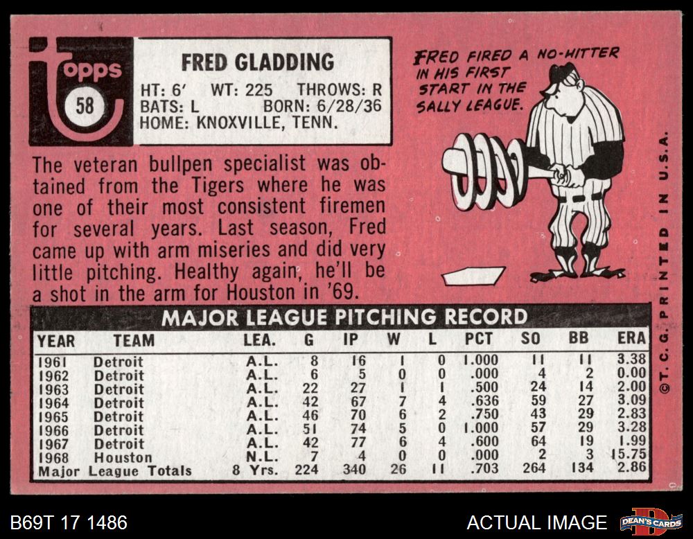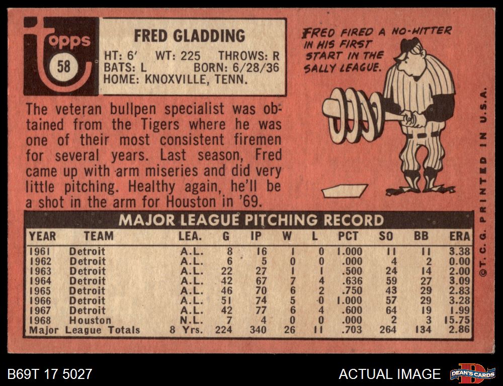 1969 Topps #58 Fred Gladding