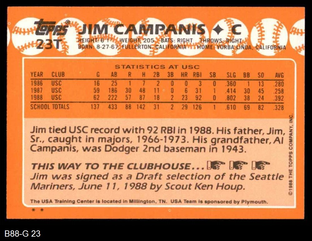 1988 Topps Traded #23 T - Jim Campanis Team USA 8 - NM/MT
