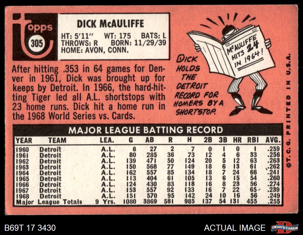 1969 Topps #305 Dick McAuliffe 1.5 - FAIR