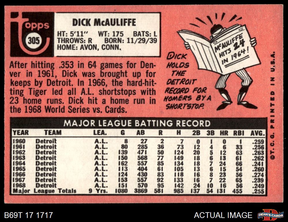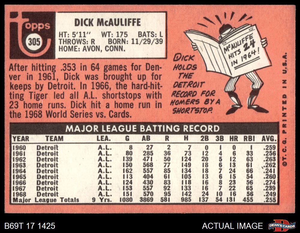 1969 Topps #305 Dick McAuliffe 5 - EX