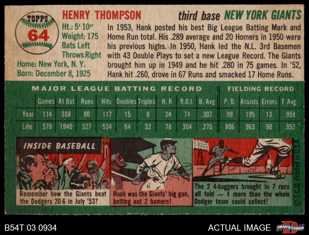 1954 Topps #64 Hank Thompson 4 - VG/EX