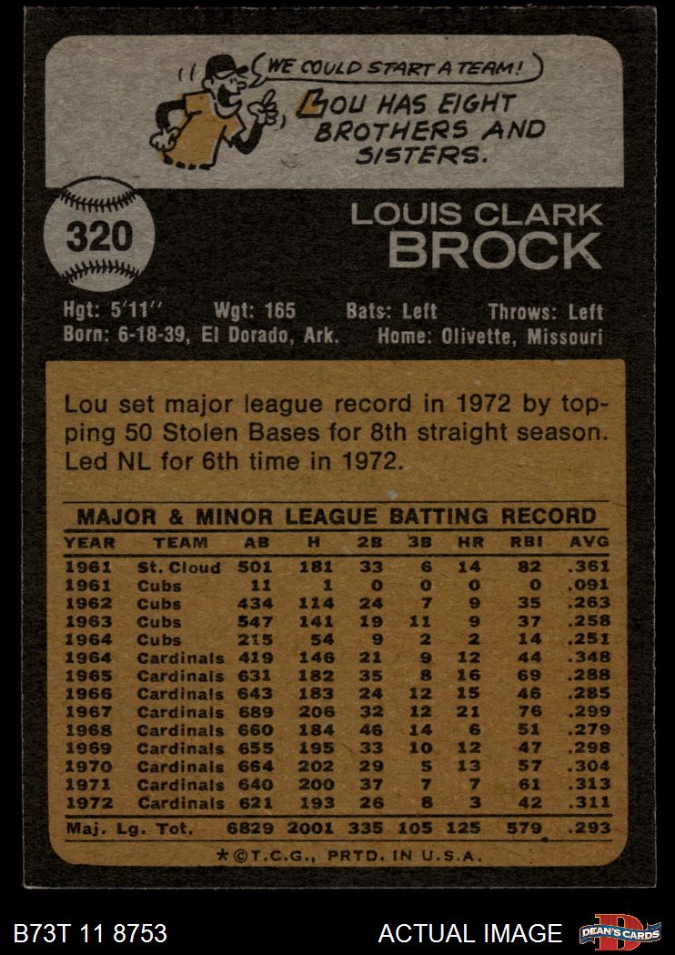 1973 Topps #320 Lou Brock 6 - EX/MT