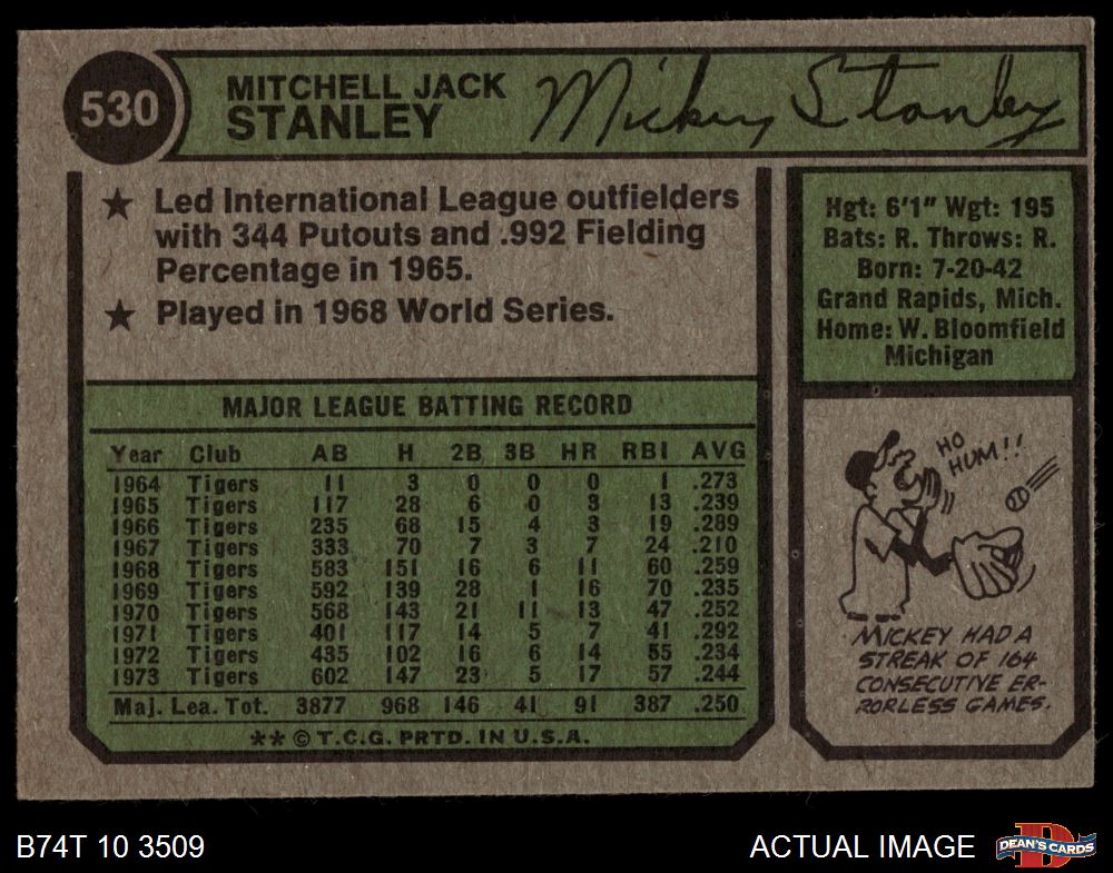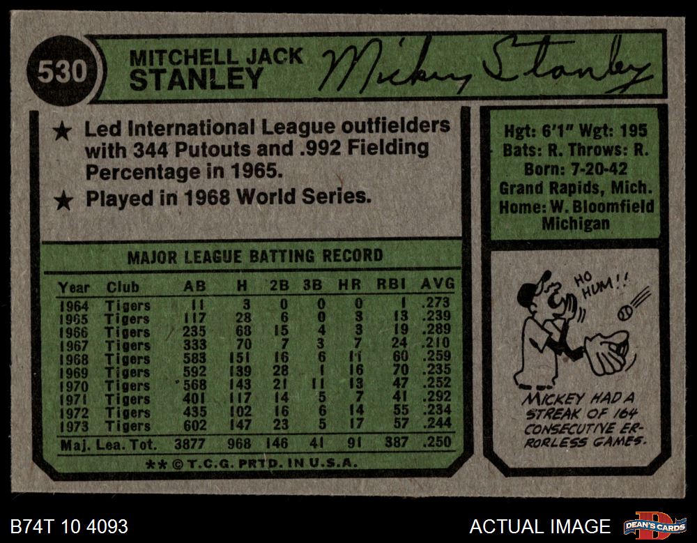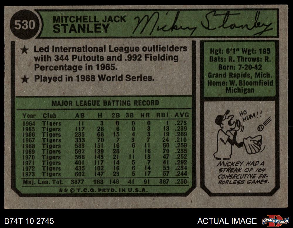 1974 Topps #530 Mickey Stanley 4 - VG/EX