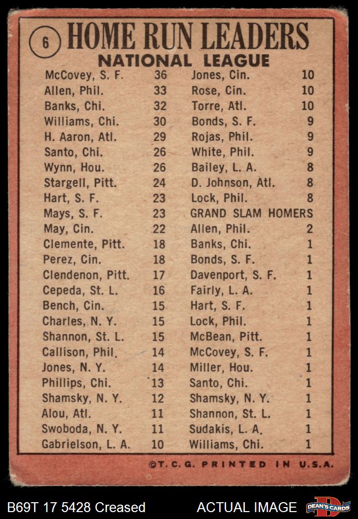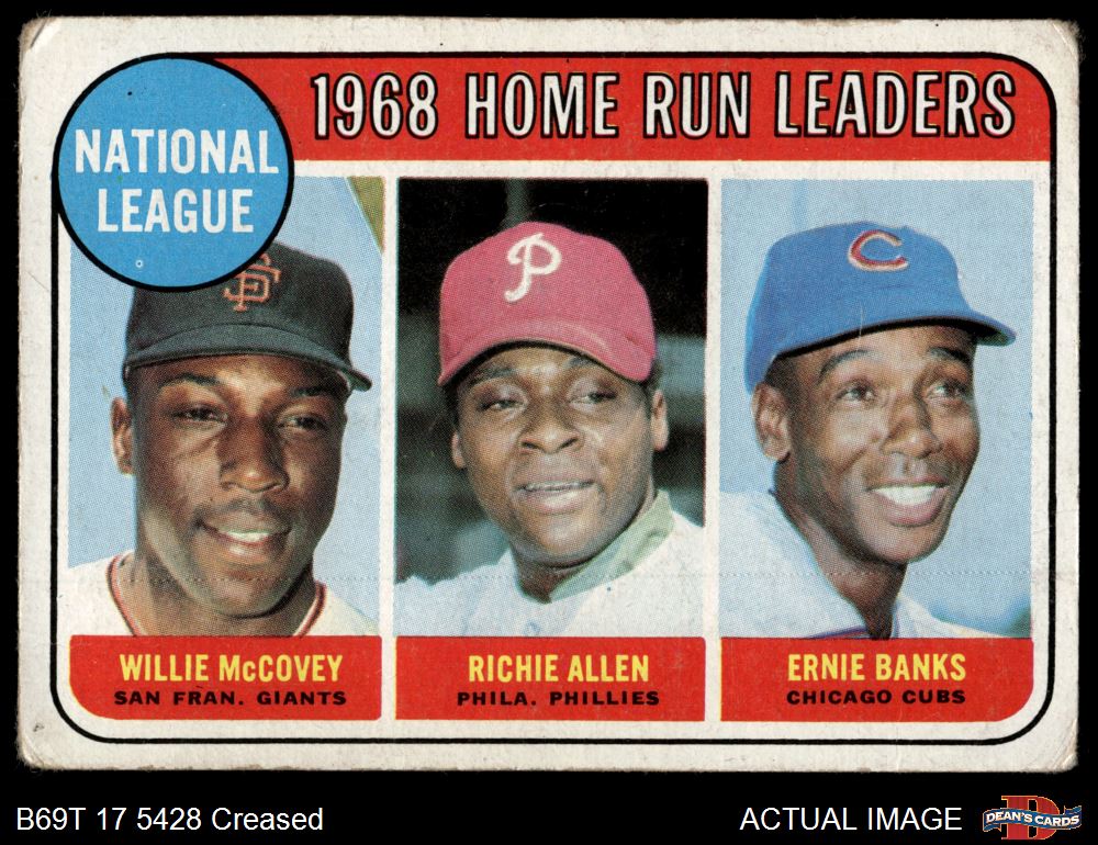 1969 Topps #6 - Willie McCovey / Rich Allen / Ernie Banks NL HR Leaders 1 - POOR