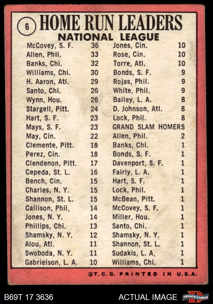 1969 Topps #6 - Willie McCovey / Rich Allen / Ernie Banks NL HR Leaders 1.5 - FAIR
