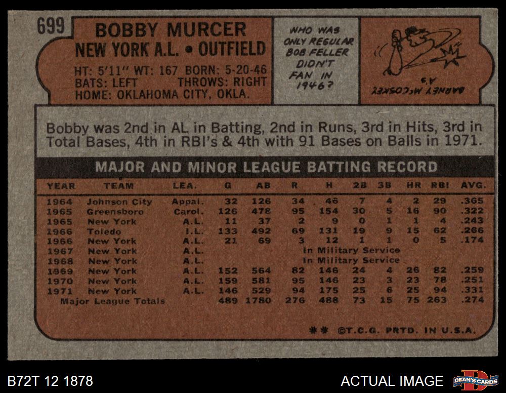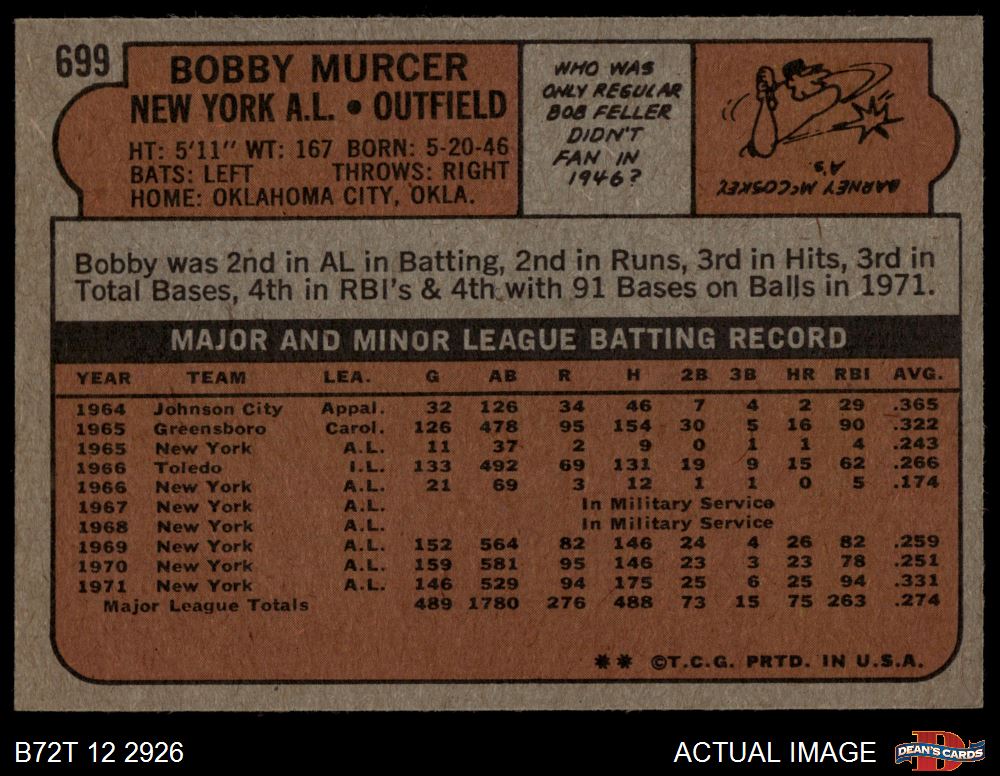 1972 Topps #699 Bobby Murcer 3 - VG