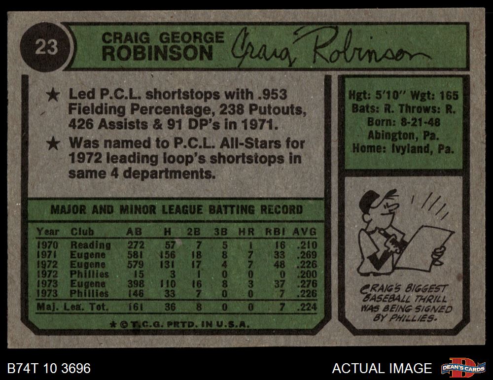 1974 Topps #23 Craig Robinson 6 - EX/MT