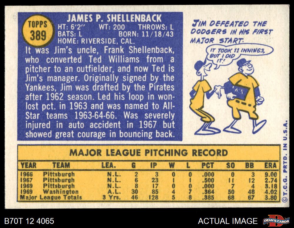 1970 Topps #389 COR Jim Shellenback 6 - EX/MT