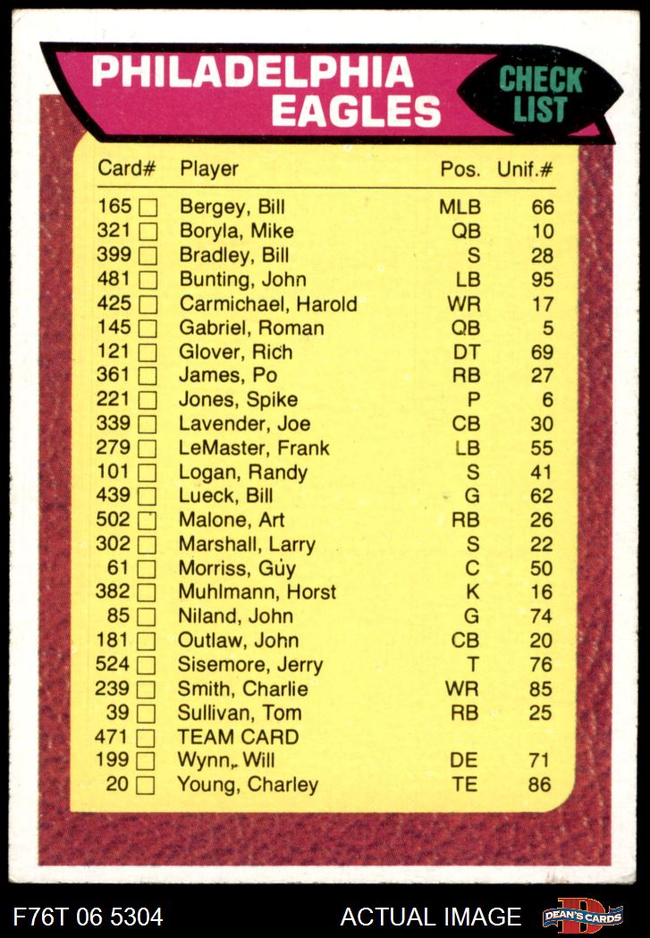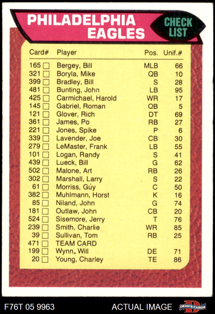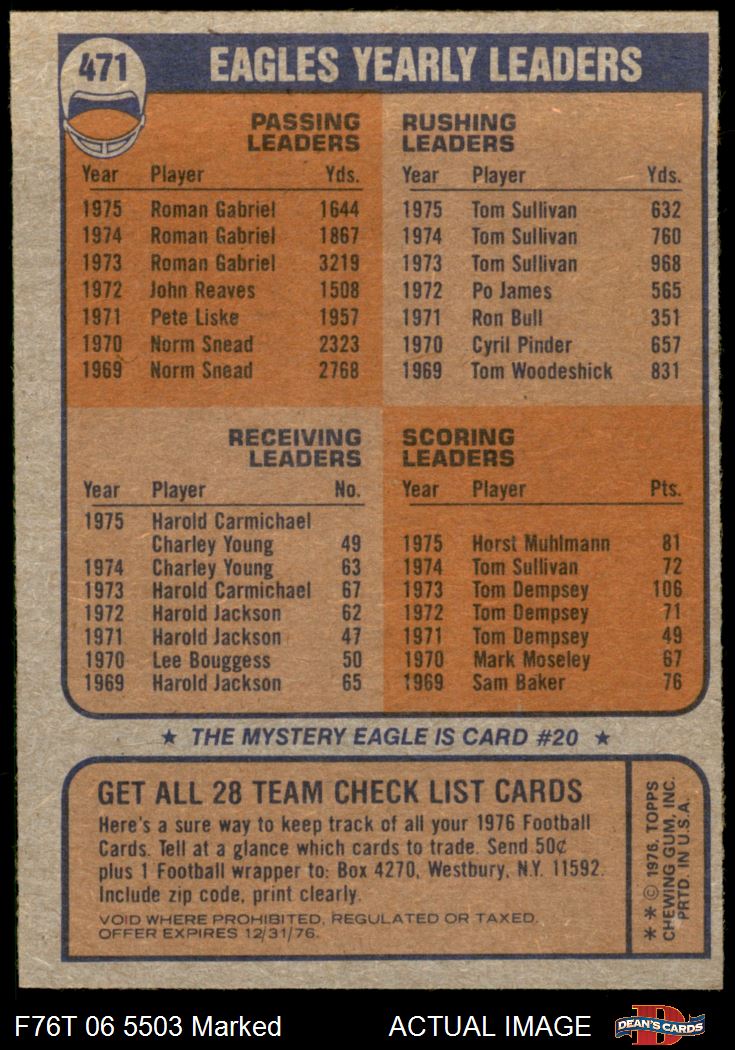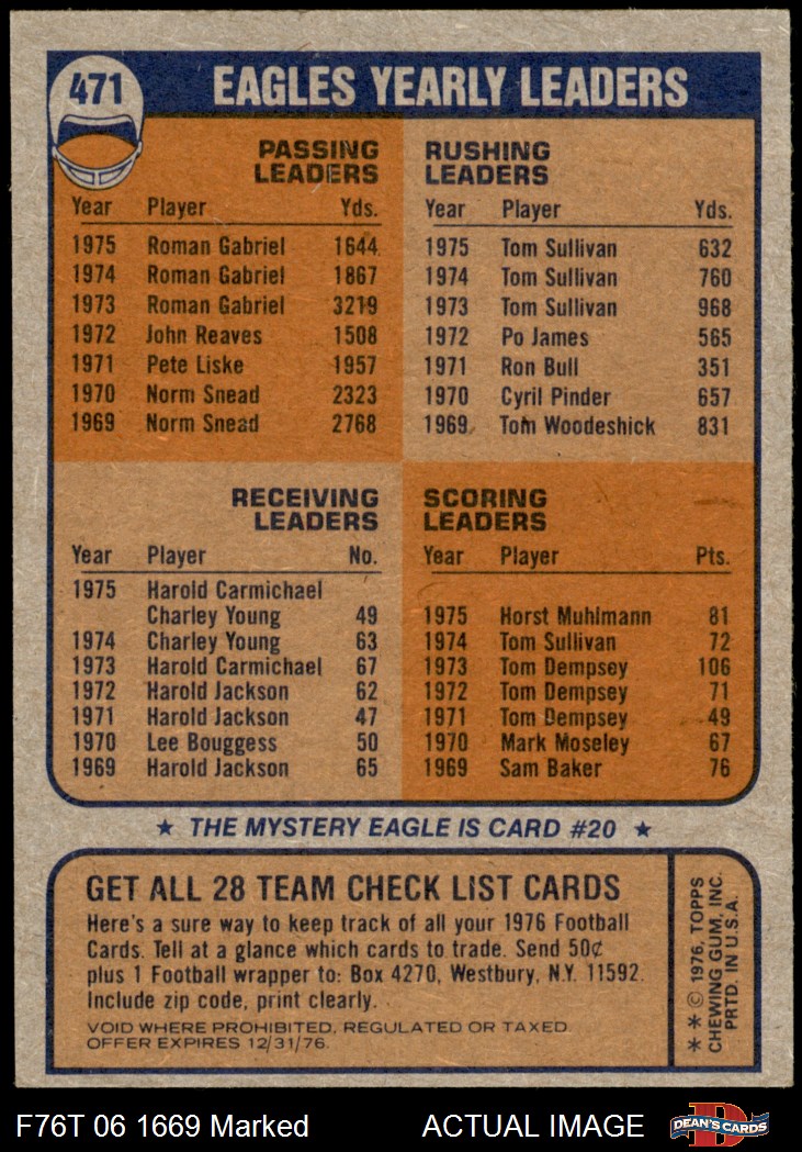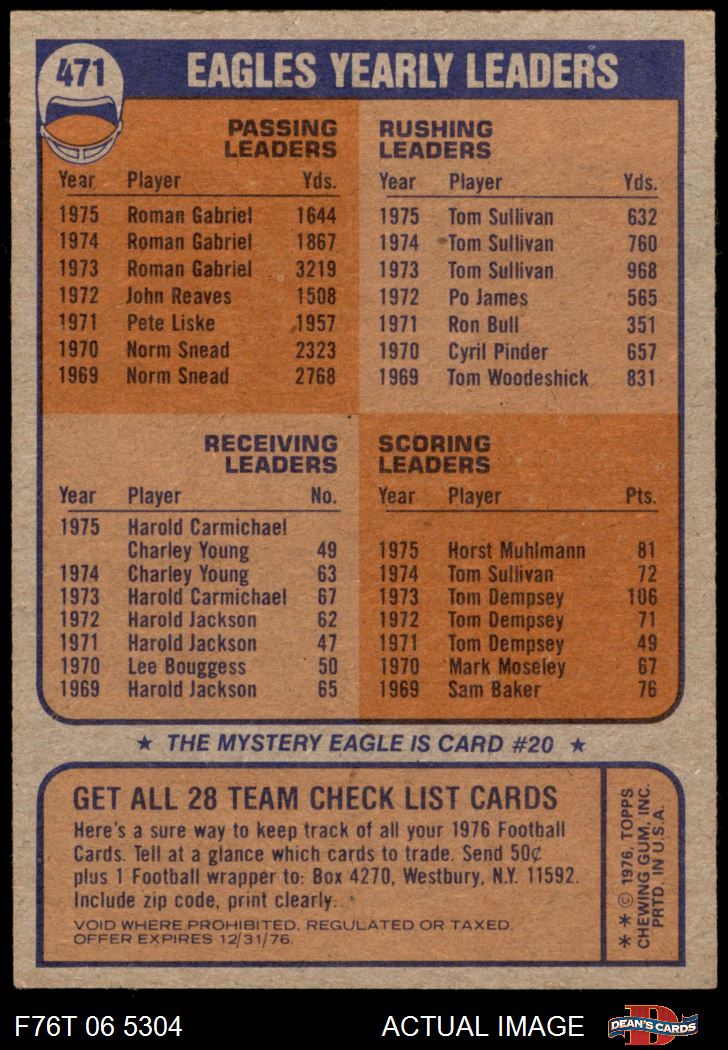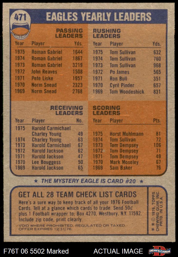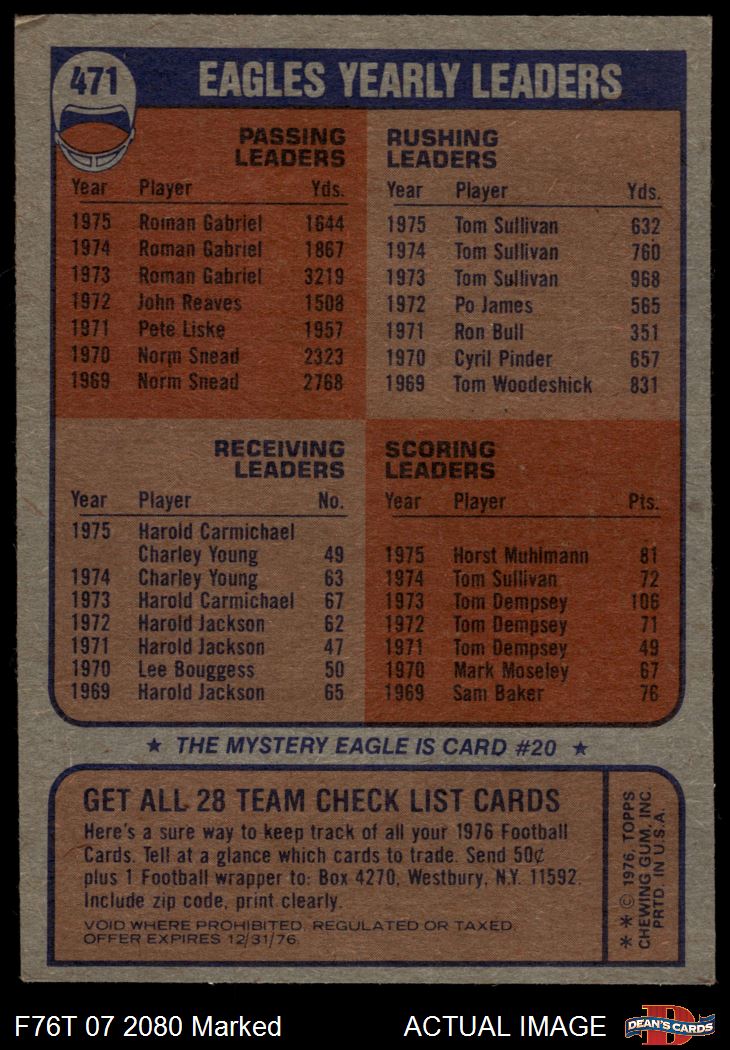 1976 Topps #471 Eagles Team Checklist