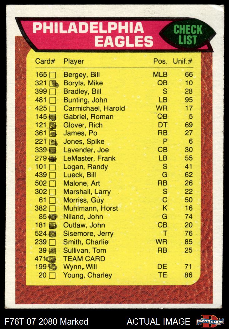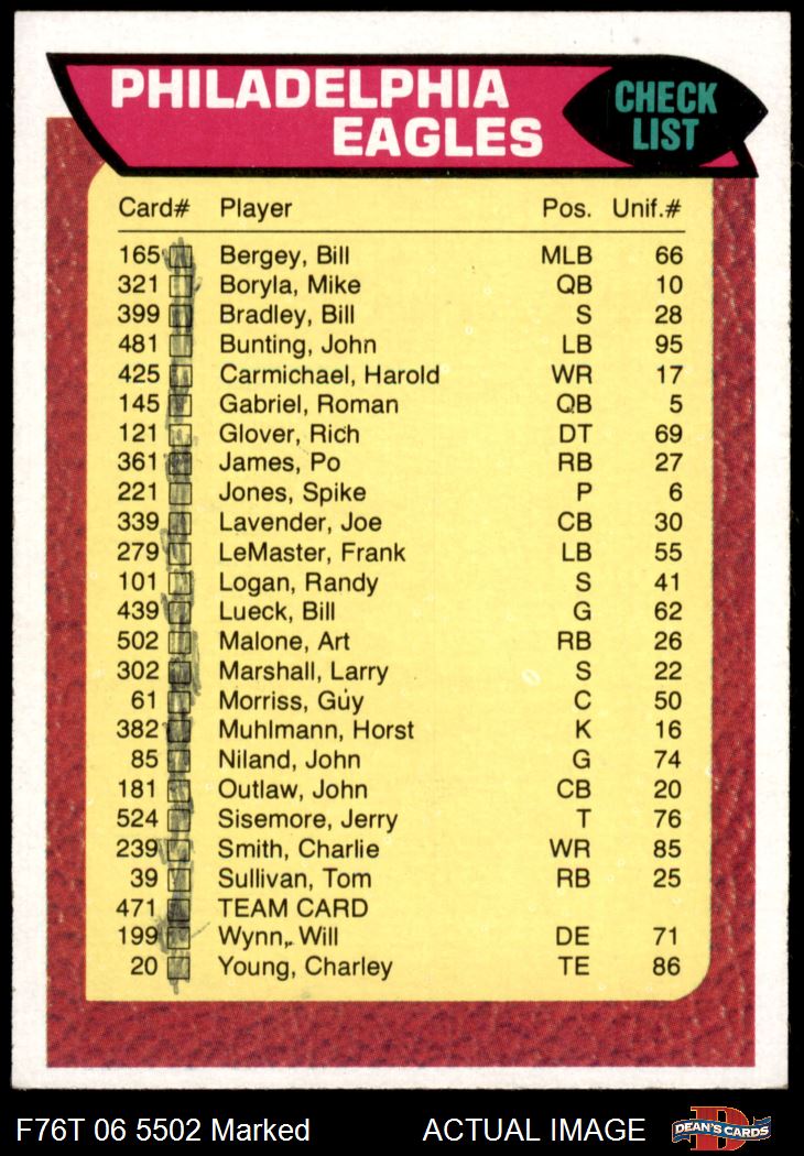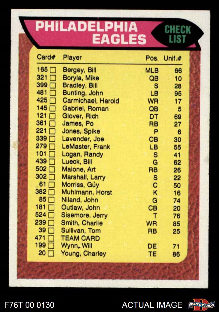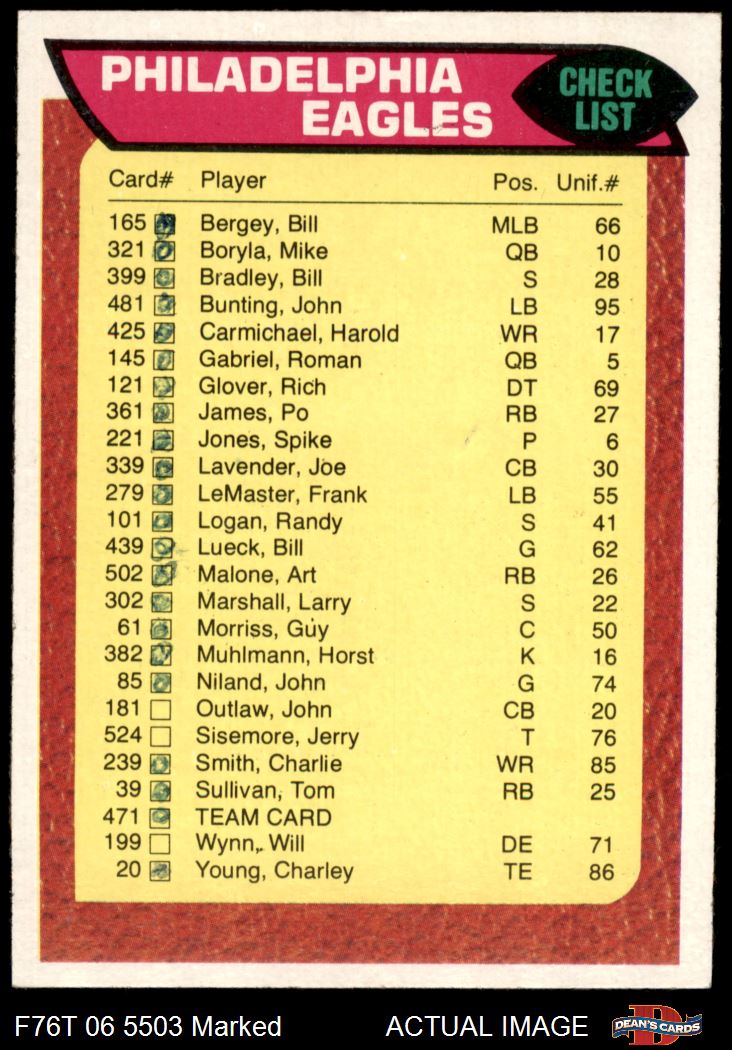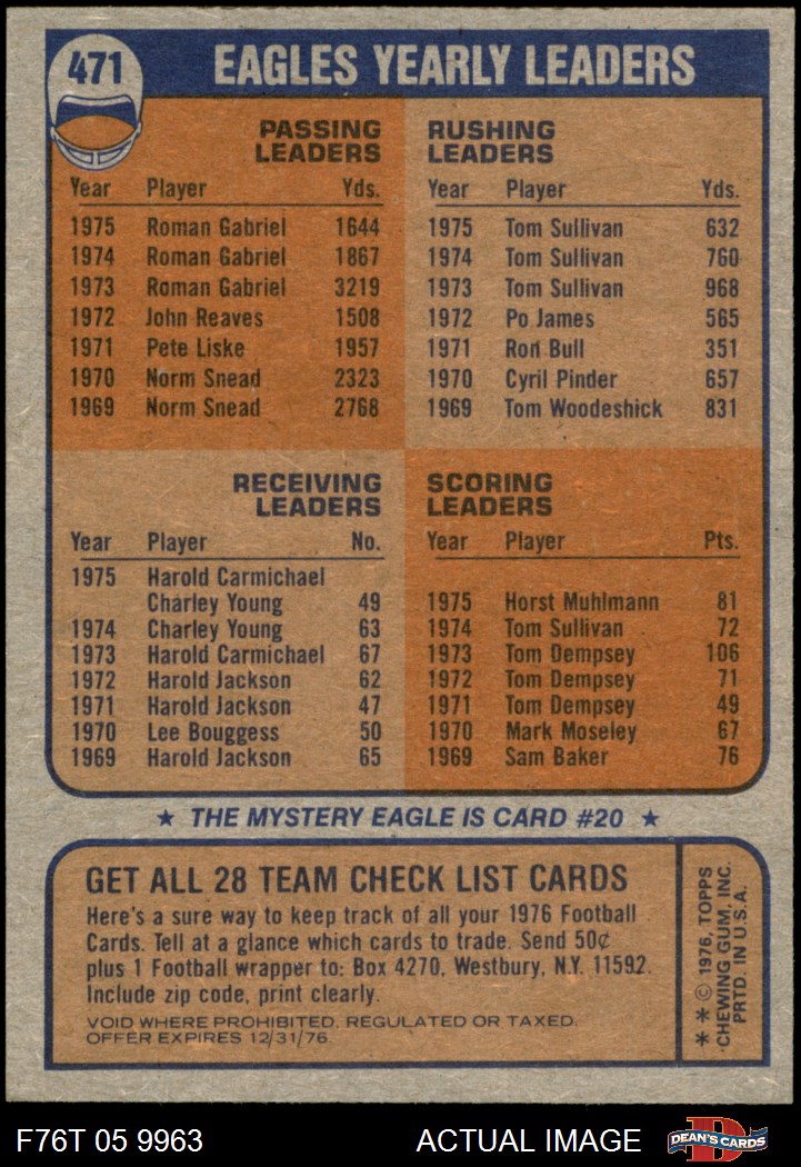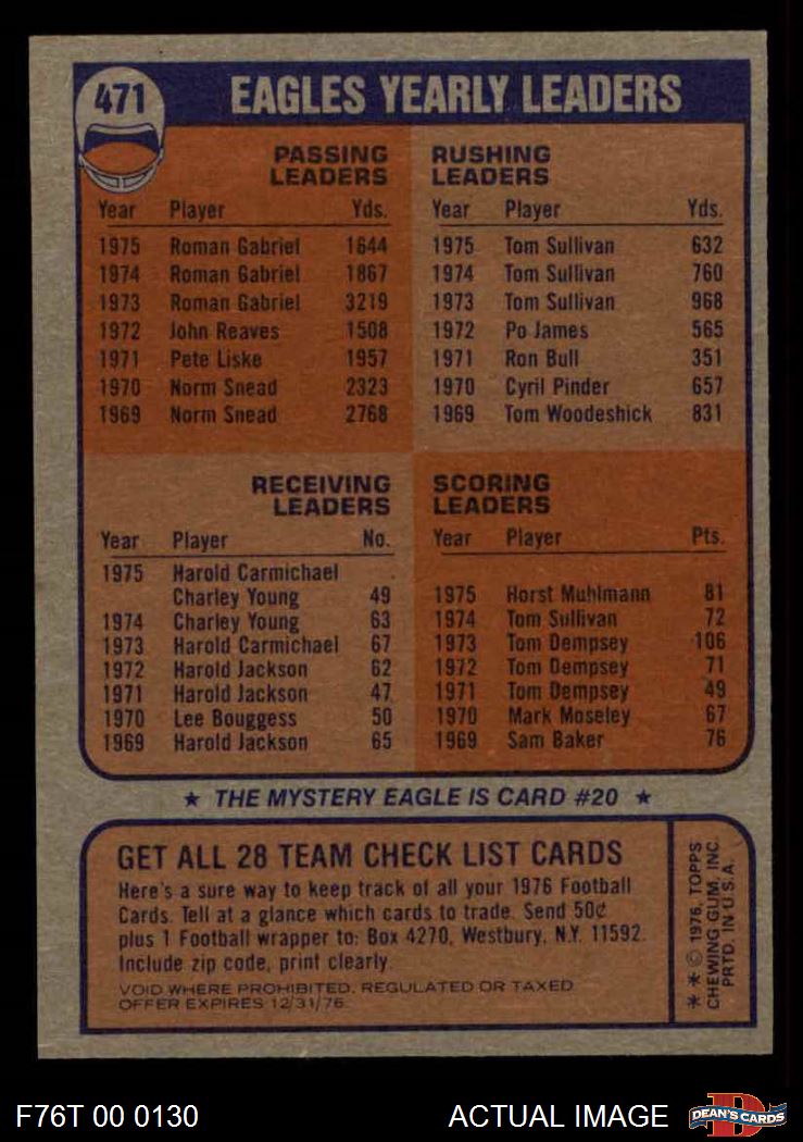 1976 Topps #471 Eagles Team Checklist