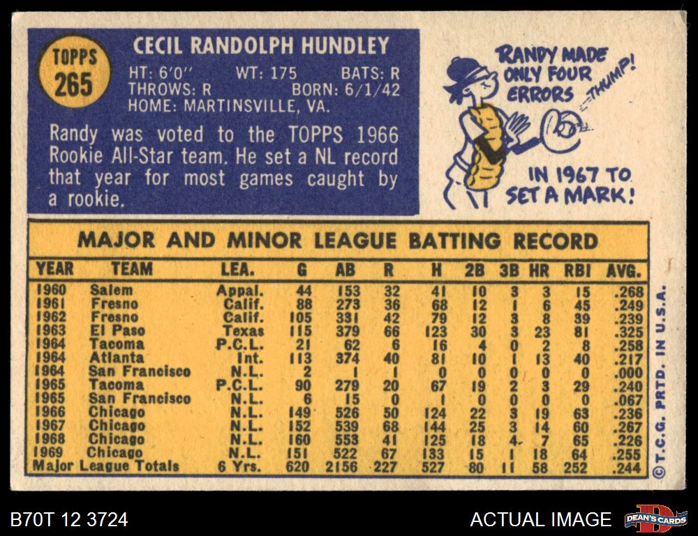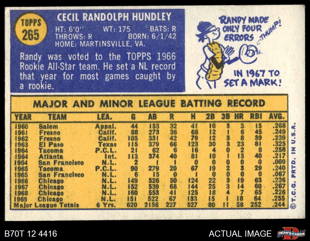 1970 Topps #265 Randy Hundley 4 - VG/EX