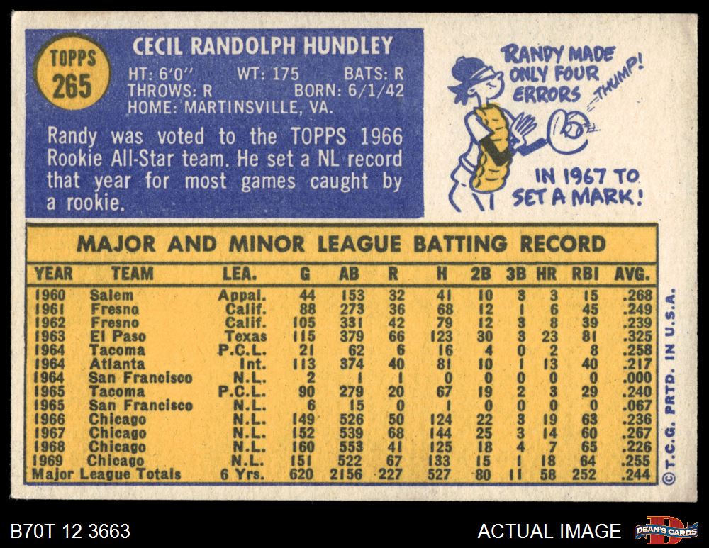 1970 Topps #265 Randy Hundley 5 - EX