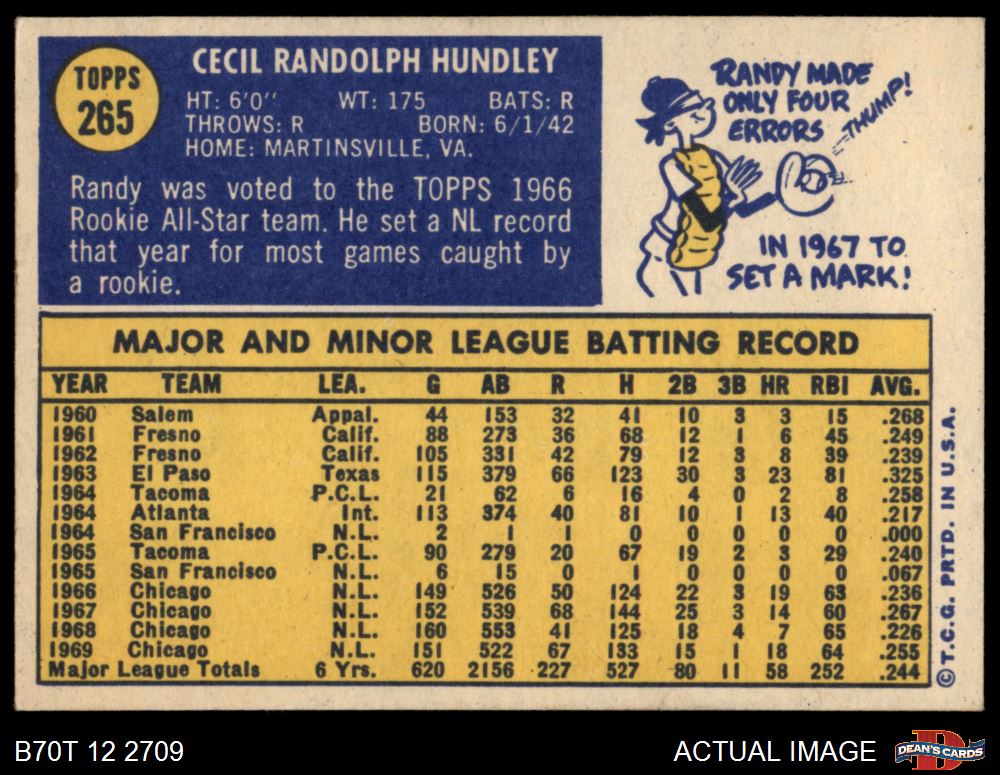 1970 Topps #265 Randy Hundley 6.5 - EX/MT+