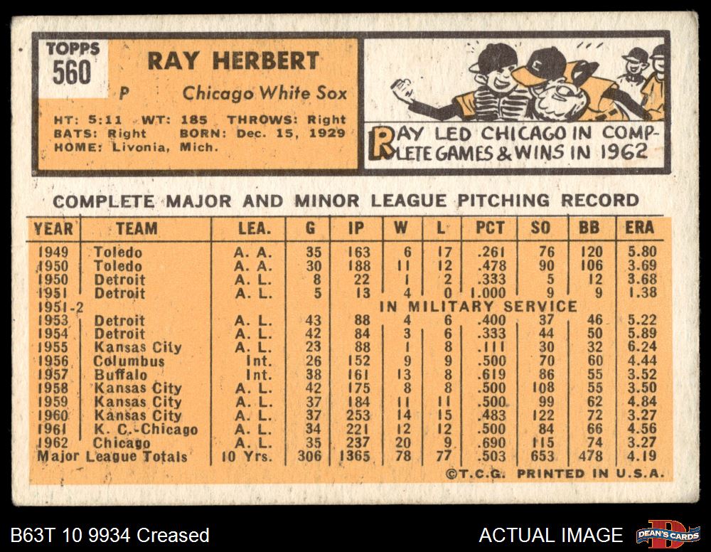 1963 Topps #560 Ray Herbert 2.5 - GD+