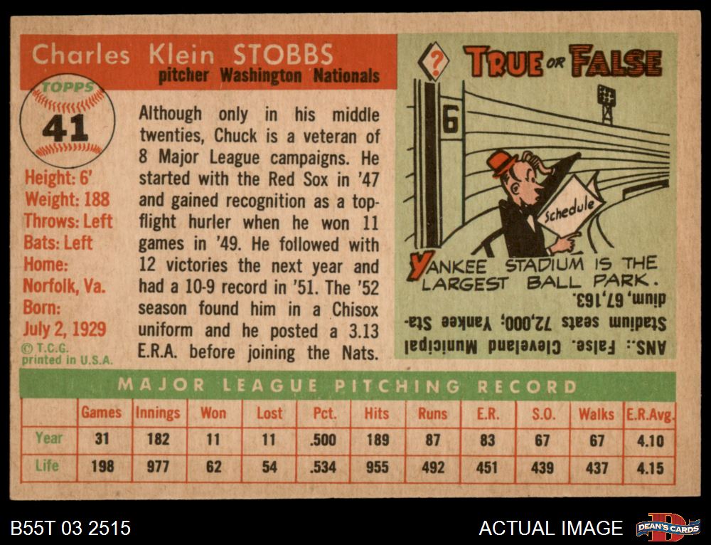 1955 Topps #41 Chuck Stobbs 5 - EX