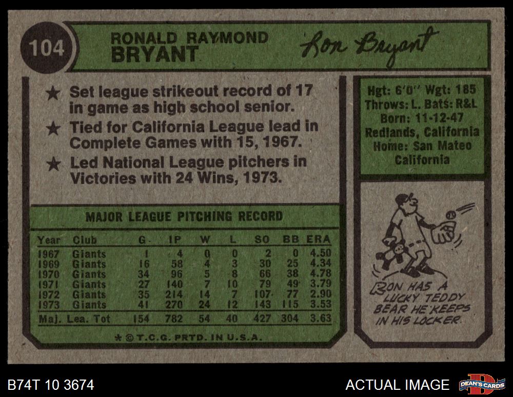 1974 Topps #104 Ron Bryant