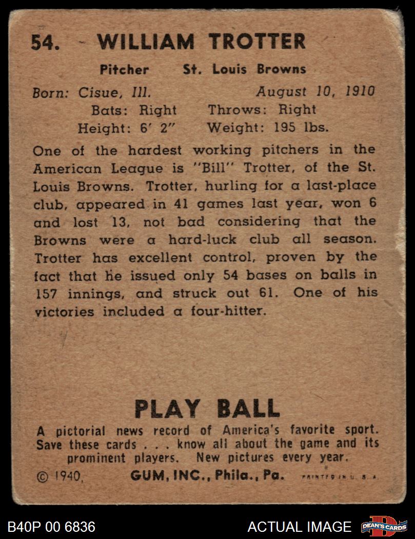 1940 Play Ball (R335) Baseball Cards (975 available)1940 Play Ball Browns (85 available)