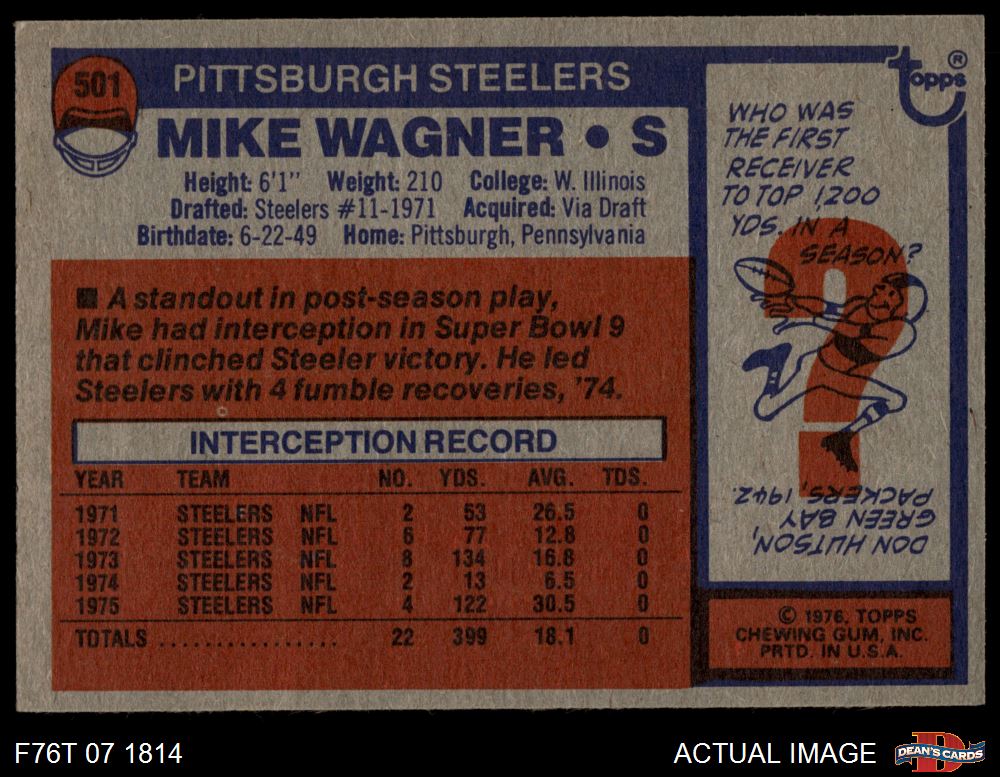 1976 Topps #501 Mike Wagner