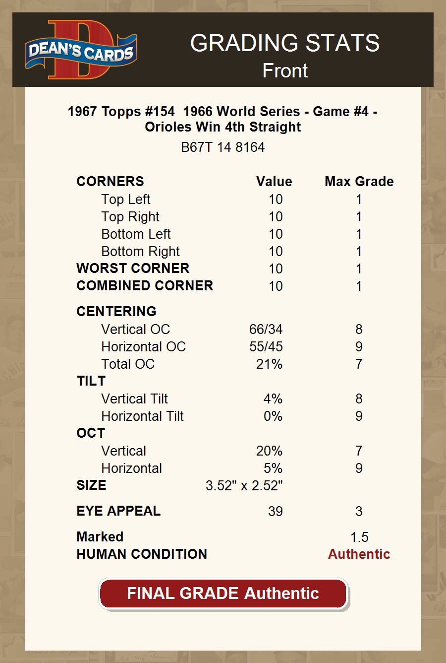 1967 Topps #154 1966 World Series - Game #4 - Orioles Win 4th Straight