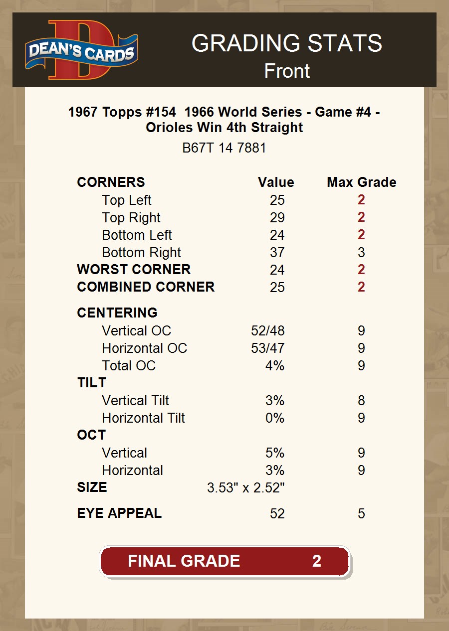 1967 Topps #154 1966 World Series - Game #4 - Orioles Win 4th Straight 2 - GOOD
