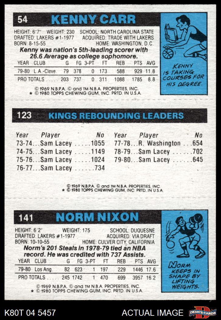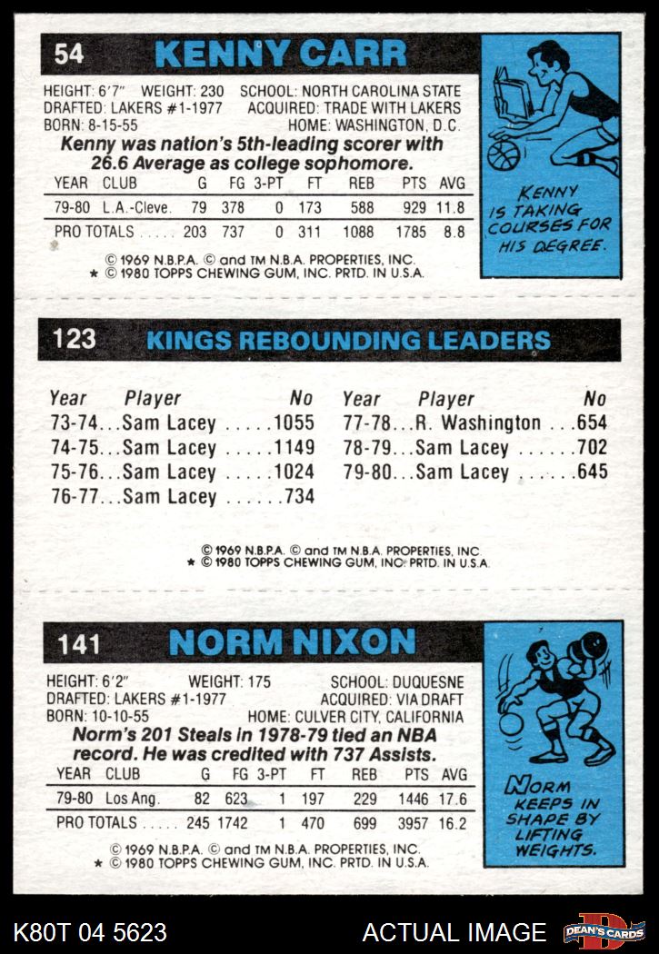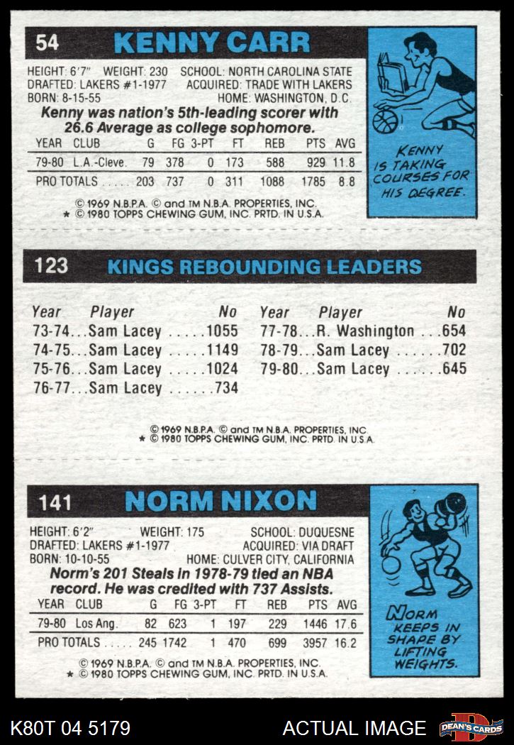 1980 Topps - Norm Nixon / Sam Lacey / Kenny Carr 141 / 123 / 54 8 - NM/MT