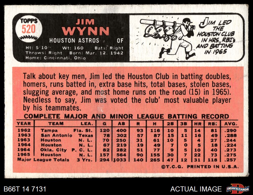 1966 Topps #520 Jim Wynn