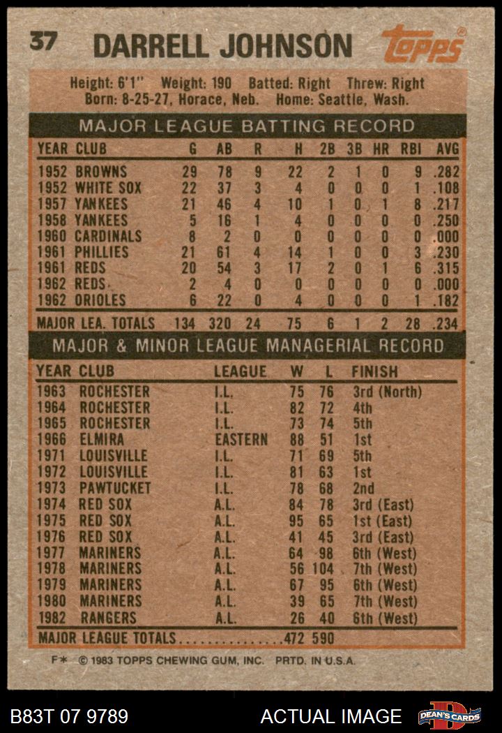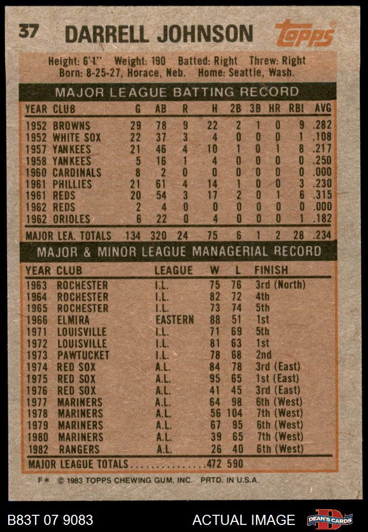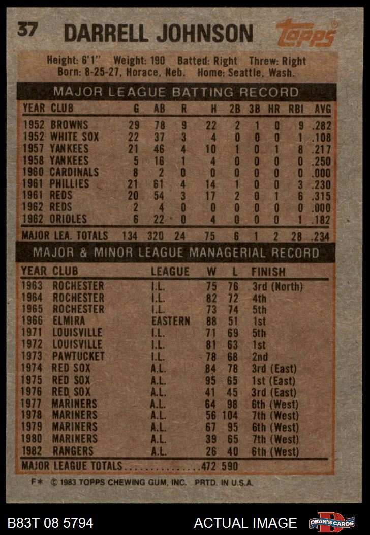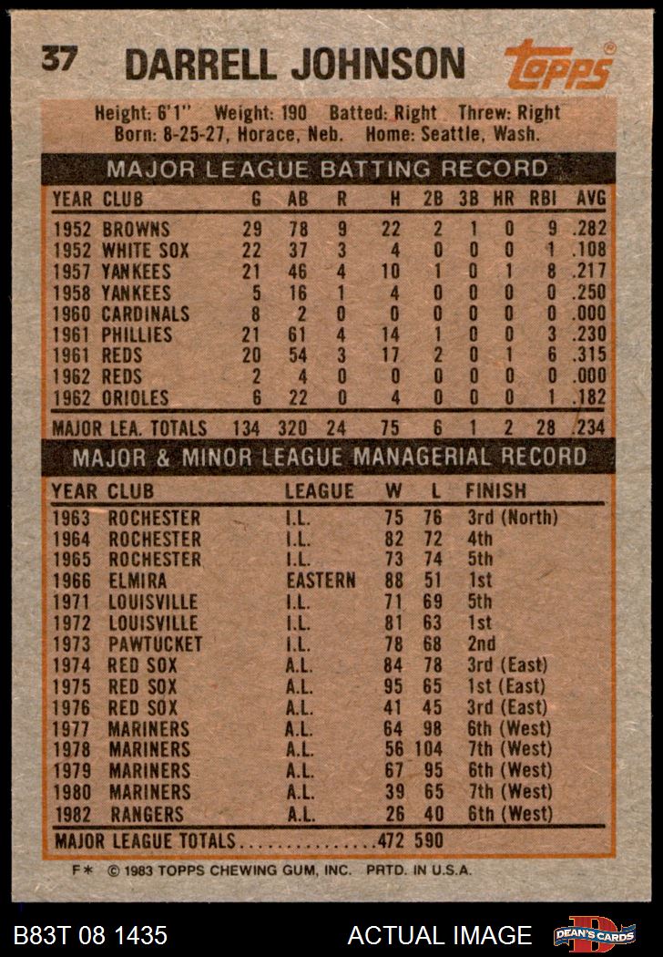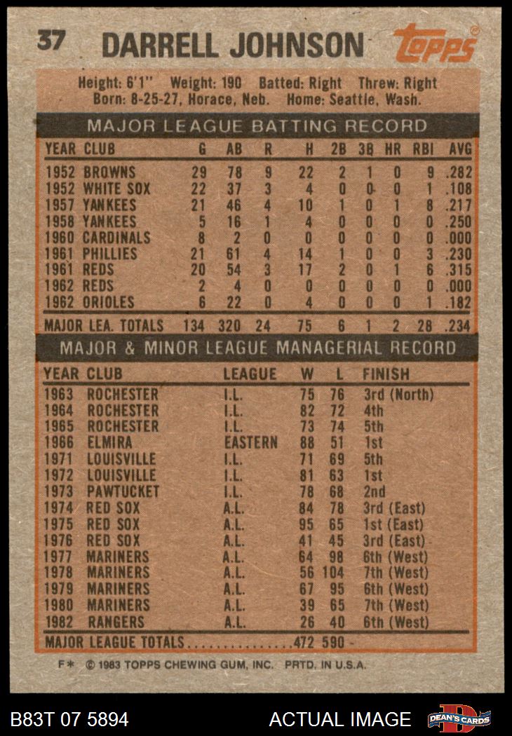 1983 Topps #37 Darrell Johnson 8 - NM/MT
