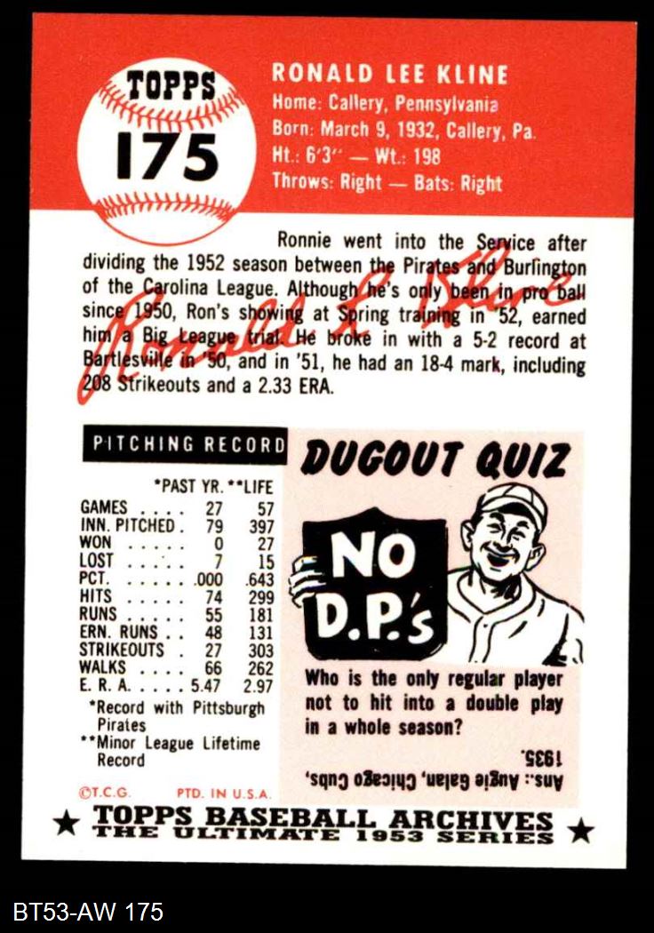 1953 Topps Archives / Reprint (1,400 available)1953 Topps Archives Pirates (87 available)