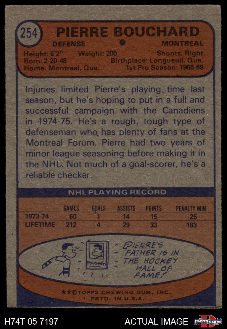 1974 Topps #254 Pierre Bouchard