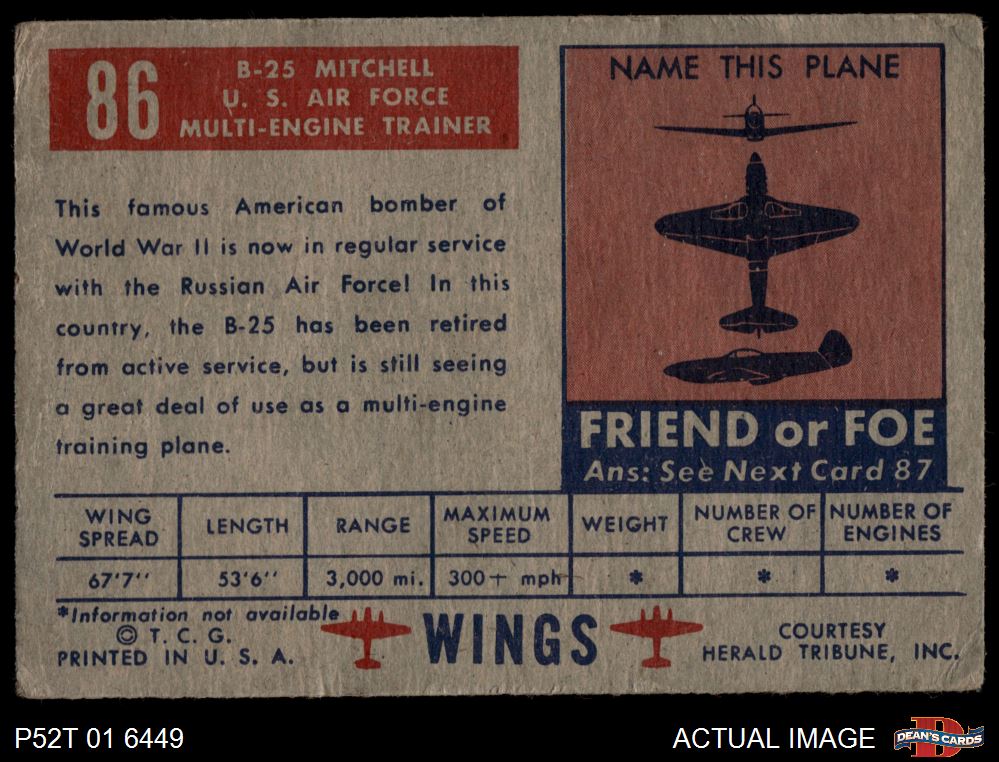 1952 Topps Wings #86 B-25 Mitchell