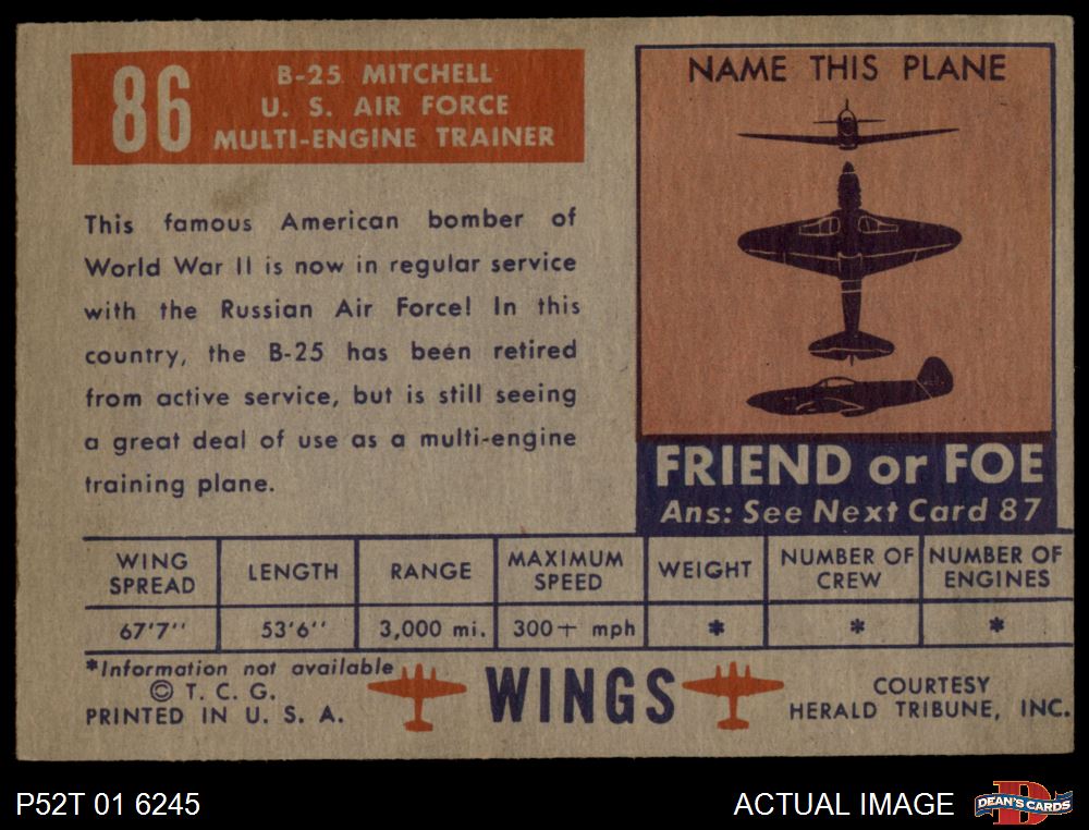 1952 Topps Wings #86 B-25 Mitchell 6 - EX/MT