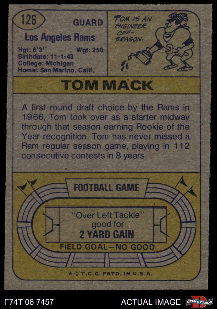 1974 Topps #126 AP - Tom Mack All-Pro 4 - VG/EX