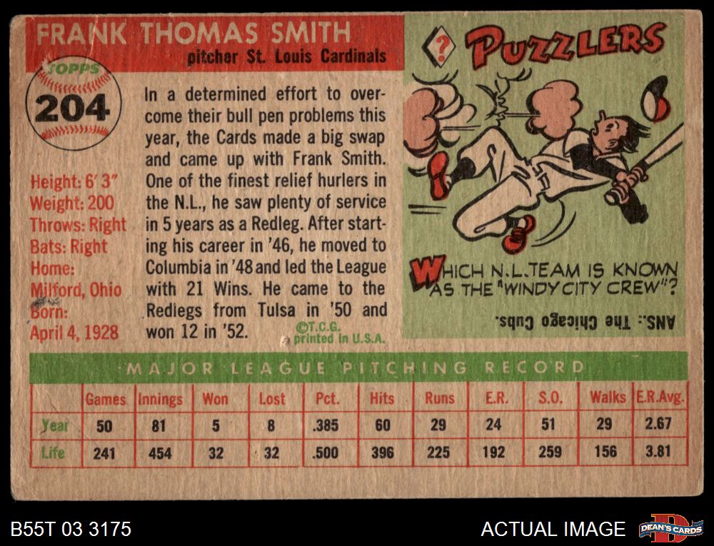 1955 Topps #204 Frank Smith 1.5 - FAIR