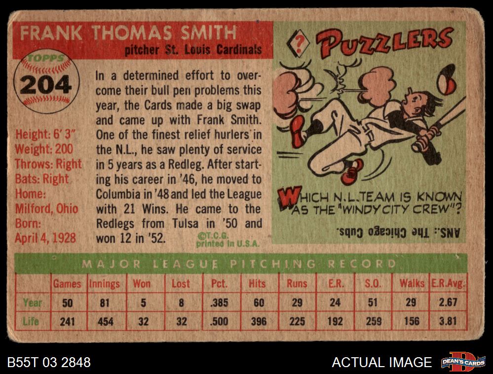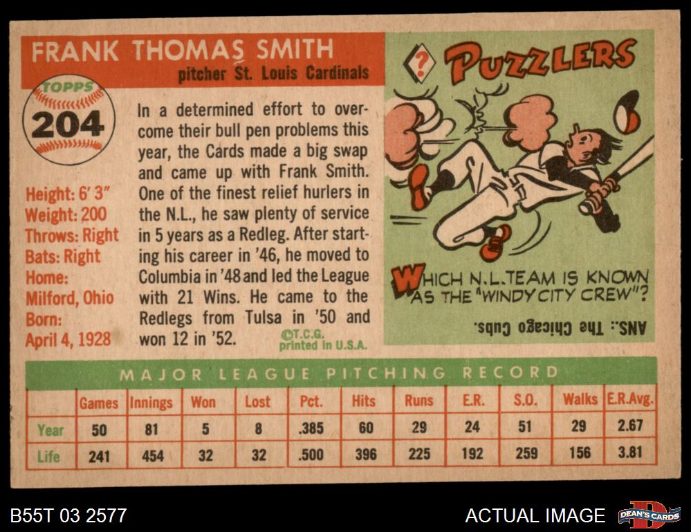1955 Topps #204 Frank Smith