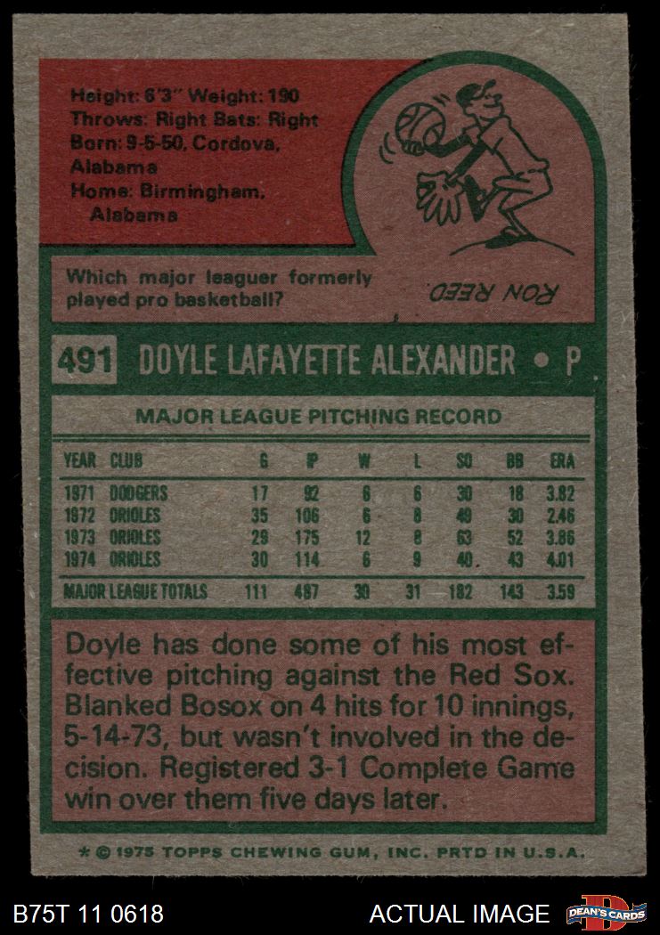 1975 Topps #491 Doyle Alexander 4 - VG/EX