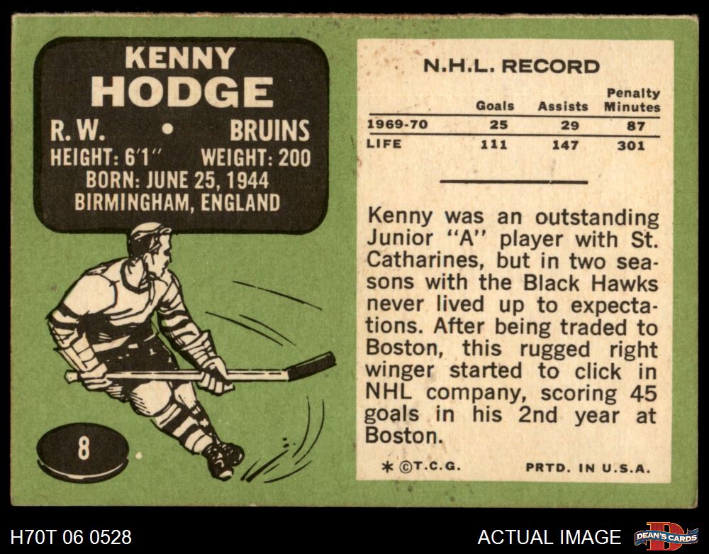 1970 Topps #8 Ken Hodge 2 - GOOD