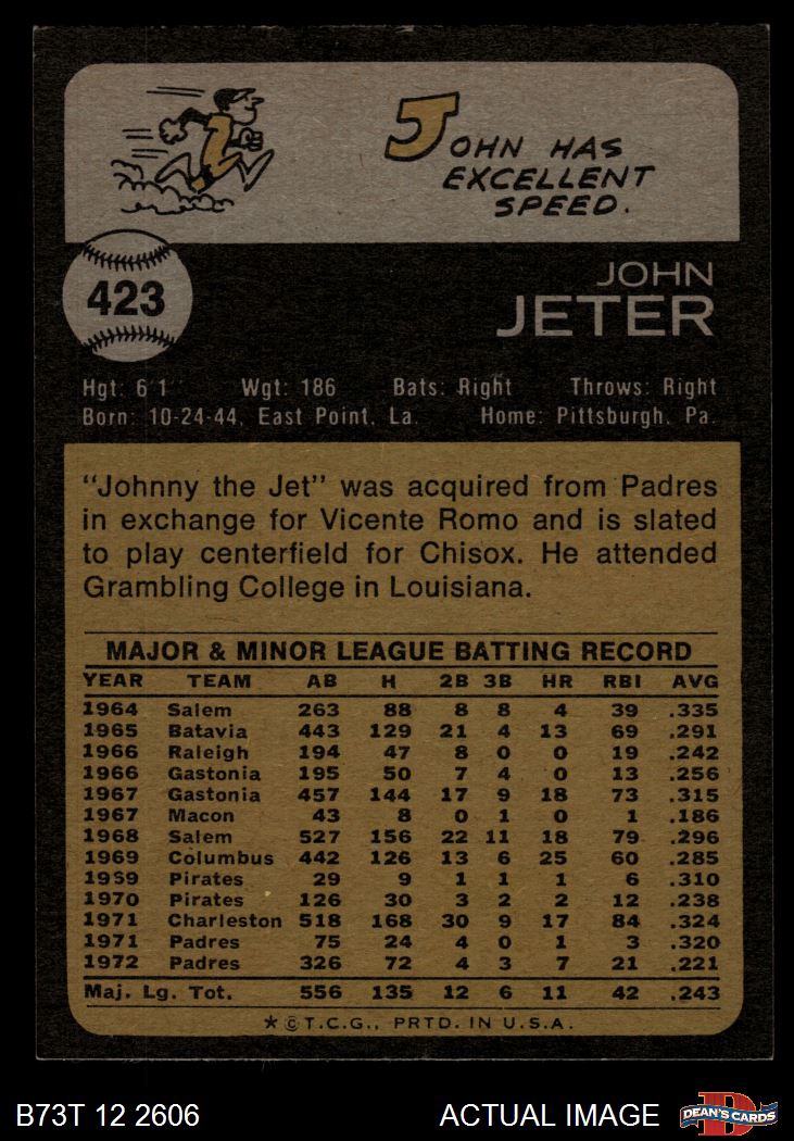 1973 Topps #423 Johnny Jeter 8 - NM/MT