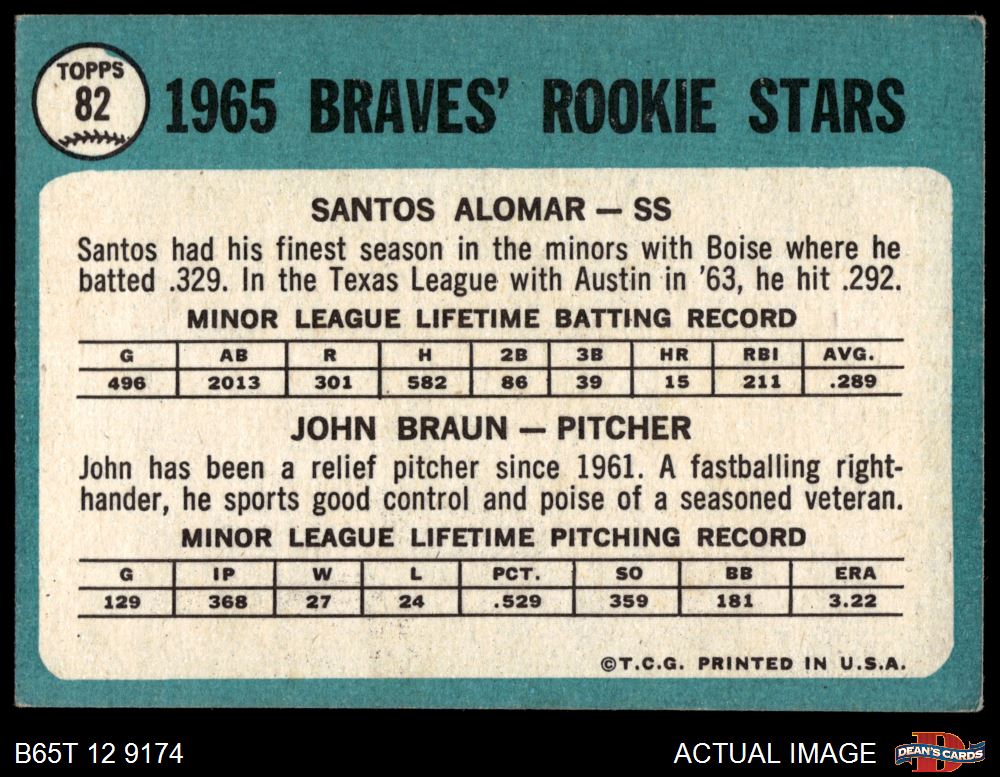 1965 Topps #82 - Sandy Alomar / John Braun Braves Rookies 3.5 - VG+