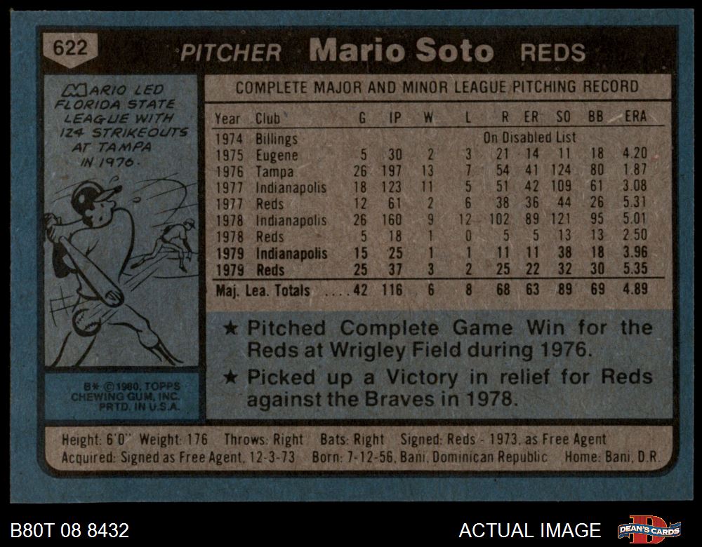 1980 Topps #622 Mario Soto 7 - NM