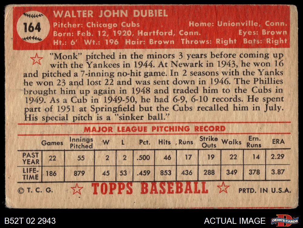 1952 Topps #164 CRM Walt Dubiel 1 - POOR