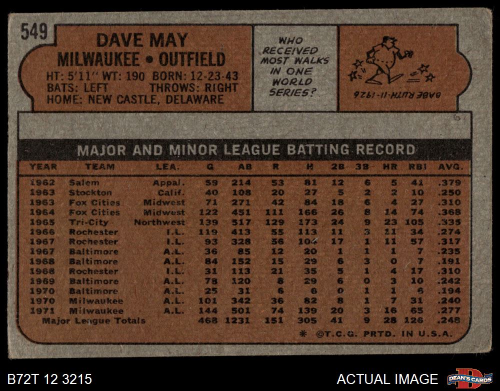 1972 Topps #549 Dave May 1.5 - FAIR