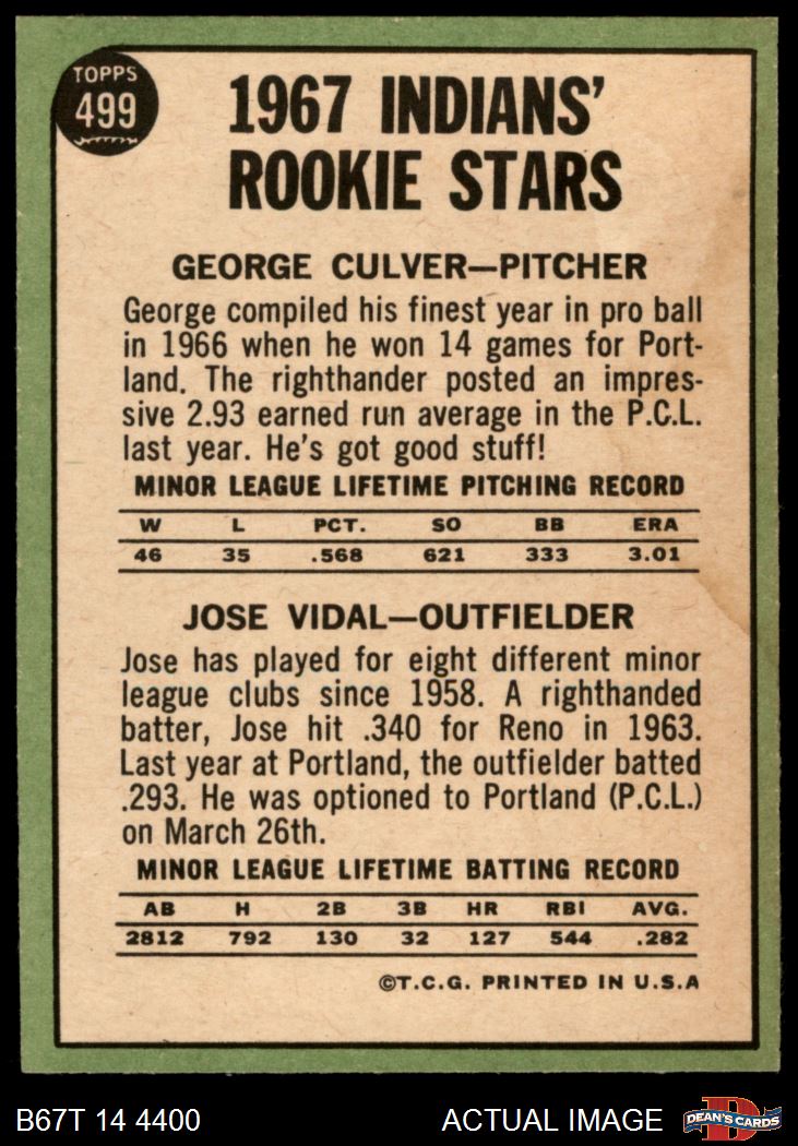 1967 Topps #499 - George Culver / Jose Vidal Indians Rookies 6 - EX/MT