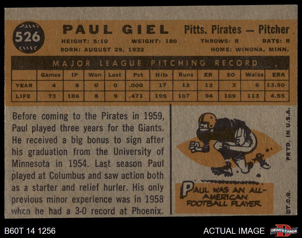 1960 Topps #526 Paul Giel 4 - VG/EX