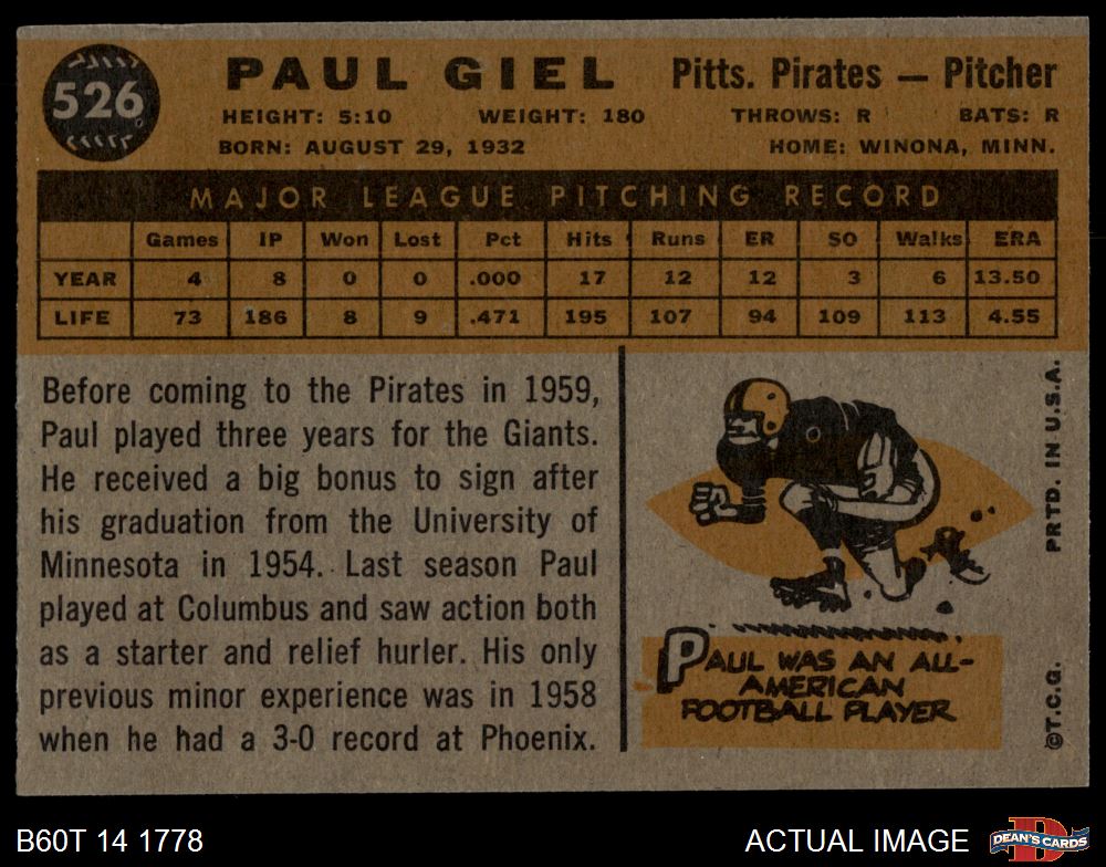 1960 Topps #526 Paul Giel 8 - NM/MT