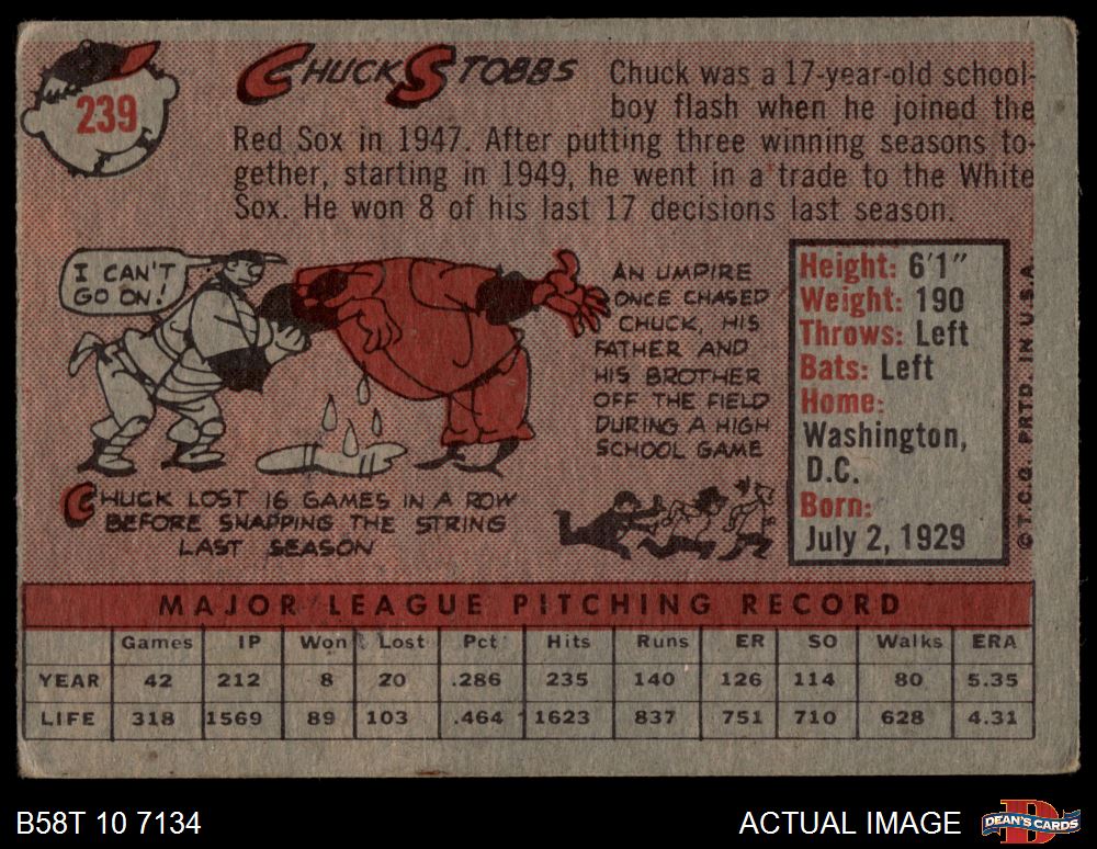 1958 Topps #239 Chuck Stobbs 2 - GOOD
