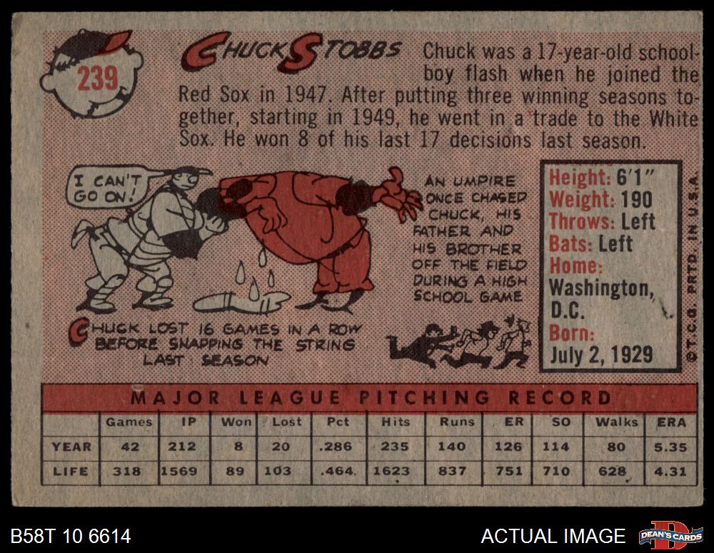 1958 Topps #239 Chuck Stobbs 4 - VG/EX