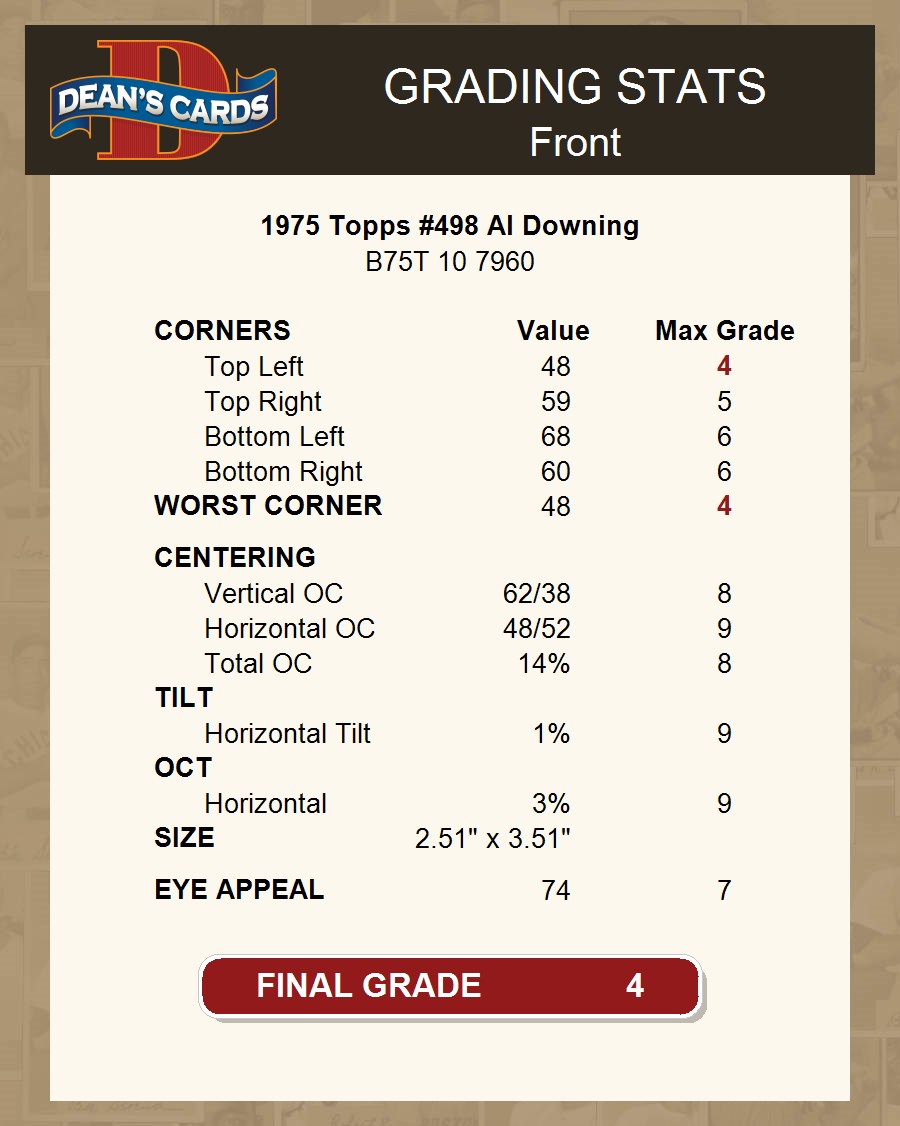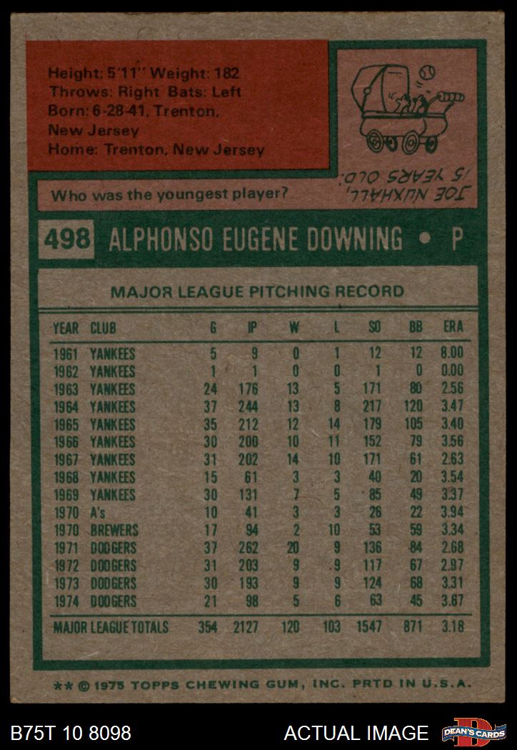 1975 Topps #498 Al Downing 4 - VG/EX